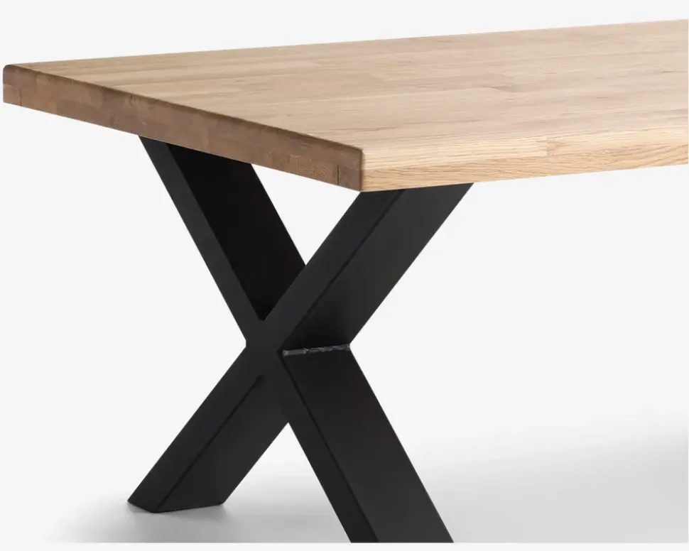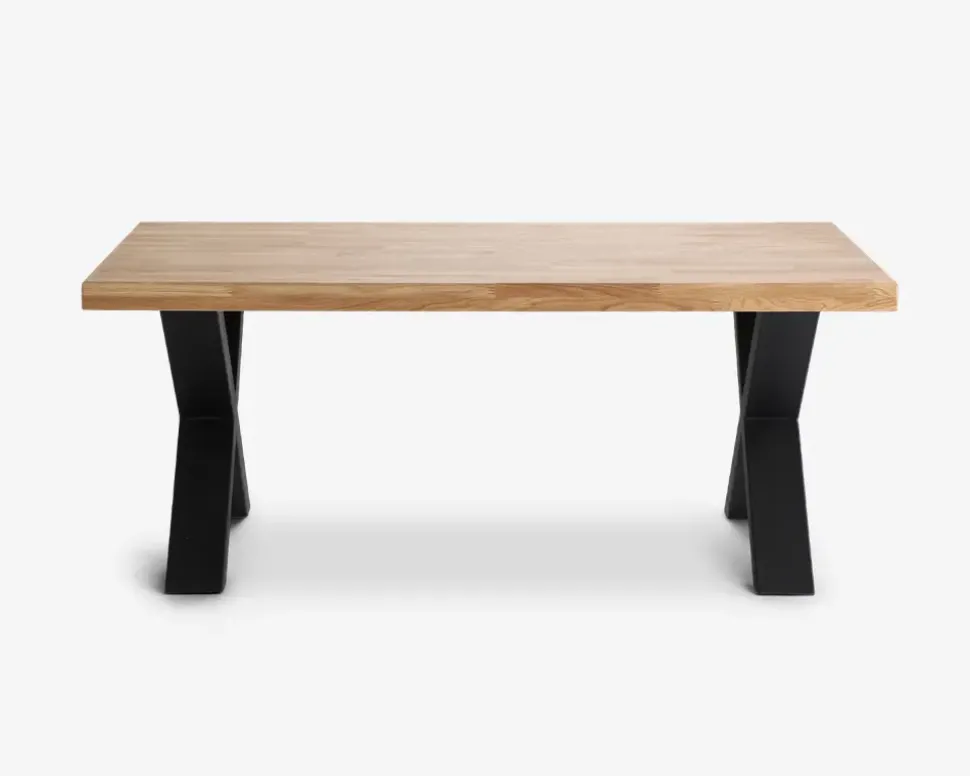 Flot og moderne sofabord som består af en bordplade med en 40mm rustik kant i massiv olieret eg, som giver bordet et gedigent udtryk og giver et flot pust til indretningen af det moderne hjem. Bordpladen er oliebehandlet og fremstår med sine 2 planker klassisk i både udførelse og design. Stellet er i sort pulverlakeret stål, som giver en stabil understøtning af bordpladen.Bordpladen er nem at holde, eg er en af de hårdeste træsorter og I vil opleve at den ikke er modtagelig i forhold til ridser og hakker. Skulle uheldet være ude, giver den massive bordplade mulighed for med fint sandpapir at udbedre eventuelle skader. Den daglige rengøring foretages med en klud vredet op i rent vand. 1 til 2 gange om året, bør bordet efterbehandles med almindelig egetræs olie, I skal følge vejledningen på den træolie i vælger at benytte, for at få det bedste resultat.• Flot og moderne sofabord• Massiv oliebehandlet eg• Sortlakeret metalstel• Leveres usamlet men samles nemt• Mål i cm: L.110 x B.70 x H.45