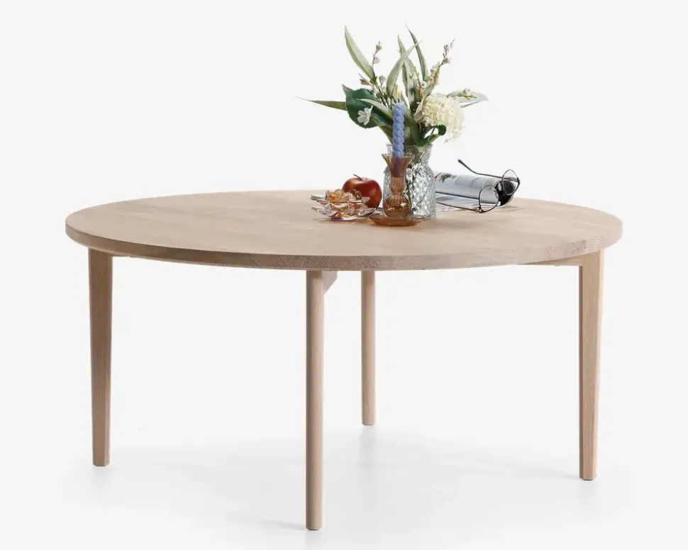 Dansk produceret sofabord i et flot design. Sofabordet er fremstillet i en meget høj kvalitet på Skovby Møbelfabrik som er kendt for at producere møbler i en høj kvalitet og et flot klassisk design. Skovby Møbelfabrik har produceret kvalitetsmøbler siden 1933. Bordet her er i massiv egetræ som er hvidolieret, hvilket giver en stærk og holdbar overflade. Bordpladen er nem at holde, eg er en af de hårdeste træsorter og I vil opleve at den ikke er modtagelig i forhold til ridser og hakker. Skulle uheldet være ude, giver den massive bordplade mulighed for med fint sandpapir at udbedre eventuelle skader. Den daglige rengøring foretages med en klud vredet op i rent vand. 1 til 2 gange om året, bør bordet efterbehandles med almindelig egetræs olie, I skal følge vejledningen på den træolie i vælger at benytte, for at få det bedste resultat.• Flot og moderne sofabord• Massiv hvidolieret eg• Dansk produceret• Leveres usamlet men samles nemt• Mål i cm: Dia. 99 cm x H.46