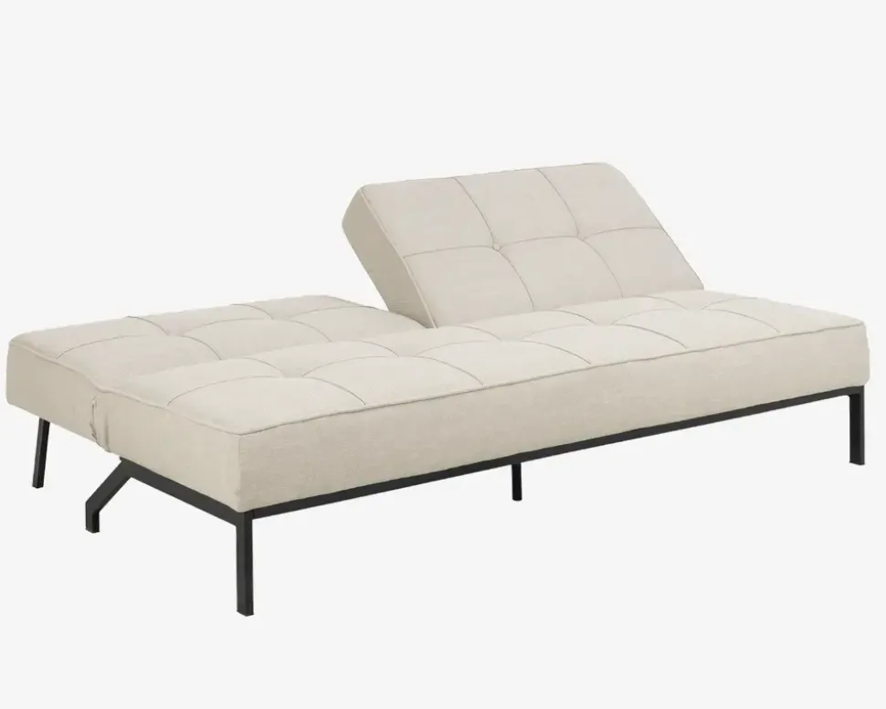 Lækker sovebriks i et smart design. Denne sovebriks er som skabt til et børne og ungdomsværelse, men kan bestemt også bruges i et gæsteværelse. Meget nem at betjene ved at ”klikke” ryggen tilbage og så har du en seng. Sæde og ryg er i formstabilt polyether skum med nozag fjedre under, som er med til at give en go sidde og også en god ligge komfort. Det anbefales altid at man ligger en rullemadras på sofaen når den skal bruges som seng. Sovebriksen er monteret med slidstærkt møbelstof som fås i farverne grå og beige. Med sortlakeret metalben. • Lækker sovebriks/sovesofa• Formstabilt polyetherskum• Med sortlakeret metalben• Fås i grå og beige• God sidde og liggekomfort• Sovemål i cm. 120×198• Mål i cm. L.198 x D.95 x H. 39/88