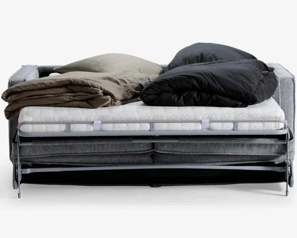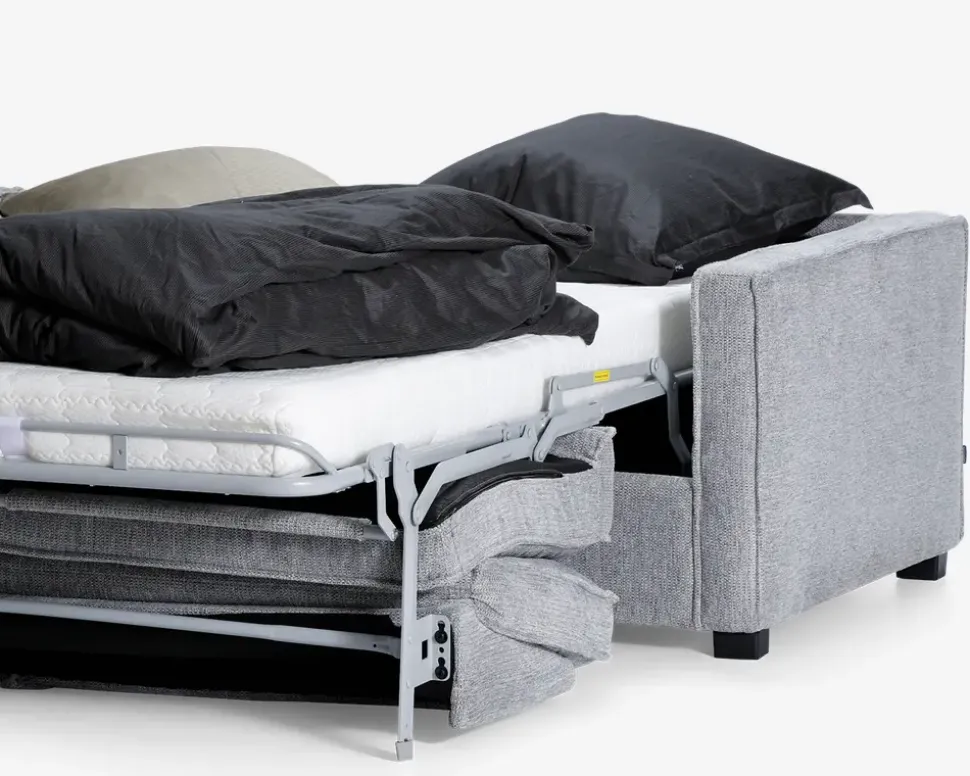 Flot og praktisk sovesofa. Den er ikke så bred som andre sovesofaer og dermed særdeles praktisk og så er den meget komfortabel. Sovesofaen er perfekt som multifunktions sofa til dagligstuen, gæsteværelset eller lejligheden, hvor man har behov for en dejlig komfortabel sofa om dagen og en god stor seng om natten. Denne sovesofa er meget nem at ændre fra sofa til dobbelt seng. Sofaen har én stor madras i formstabilt polyether skum og det giver en rigtig god seng. Virkelig en dejlig og funktionel sofa. Sovesofaen er monteret med slidstærkt møbelstof. Sofaen leveres samlet. • Flot og praktisk sovesofa• Én stor madras i formstabilt polyether skum• Slidstærkt møbelstof • Træramme med nozagfjedre• Mål i cm. L.181 x D.69 x H.44/96• Udslået mål i cm: L.195 x B.140