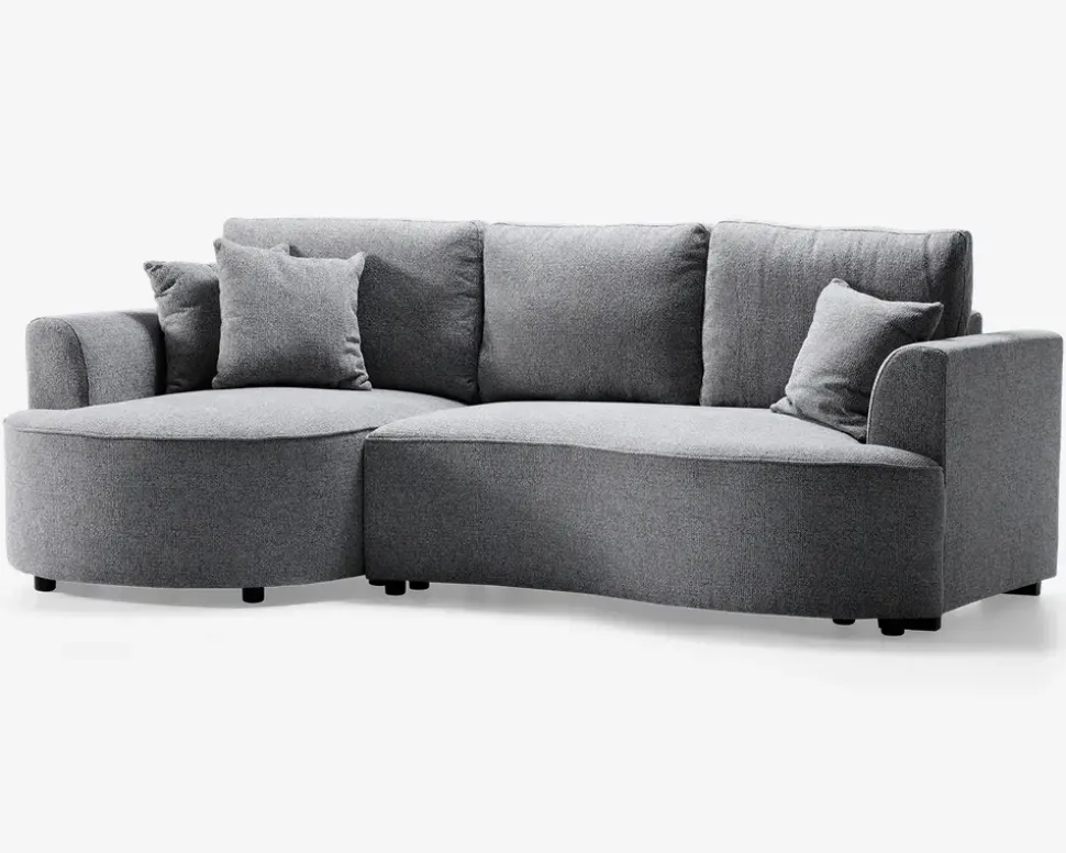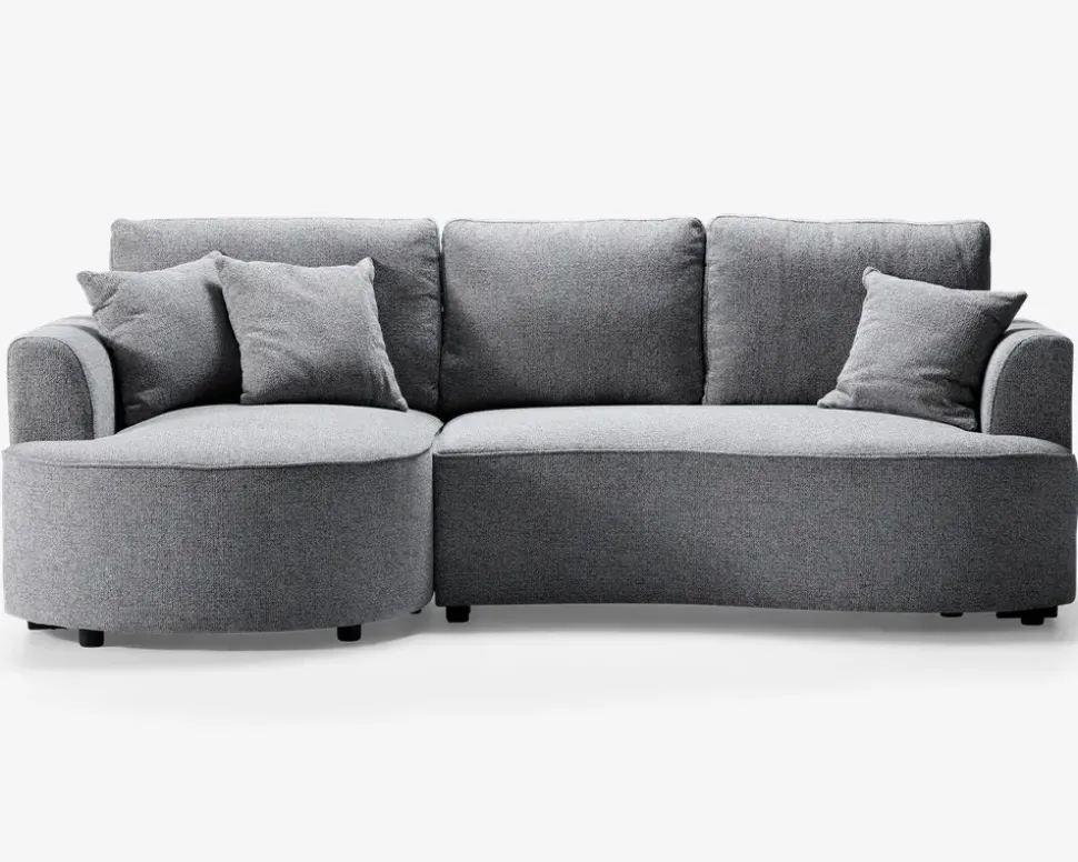 Her er der tale om en sovesofa, som overhovedet ikke ligner en sovesofa. Sovesofa med chaiselong og flotte runde former som ikke tidligere er set på en sovesofa og som kan fås både højre og venstrevendt. Stilig, praktisk og meget komfortabel. Sovesofaen er perfekt som multifunktions sofa til dagligstuen, gæsteværelset eller lejligheden, hvor man har behov for en dejlig komfortabel sofa om dagen og en stor seng om natten. Denne sovesofa er meget nem at ændre fra sofa til dobbelt seng. Og så har den 2 meget store magasiner til opbevaring af bl.a. sengetøj og lign. Sofaen har posefjedre og formstabilt polyether skum i sædet. Virkelig en dejlig og funktionel sofa. Sovesofaen er monteret med slidstærkt møbelstof. Sofaen leveres usamlet. • Flot og kæmpestor sovesofa• Posefjedre og formstabilt polyether skum• Slidstærkt møbelstof • Træramme med nozagfjedre• 2 store magasiner til opbevaring af sengetøj• Mål i cm. L.252 x D.143 x H.45/91• Udslået mål i cm: 135×205