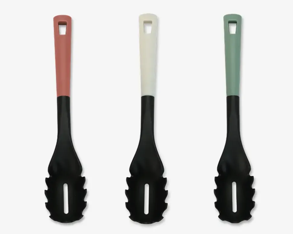 Praktisk køkkenredskab der ikke ridser pander og gryder. Den er designet så den kan hænge, er fremstillet i et holdbart materiale og tåler temperatur op til 170°. Bemærk at de kommer assorteret, købes enkeltvis og at der ikke kan vælges farve ved køb i webshoppen.