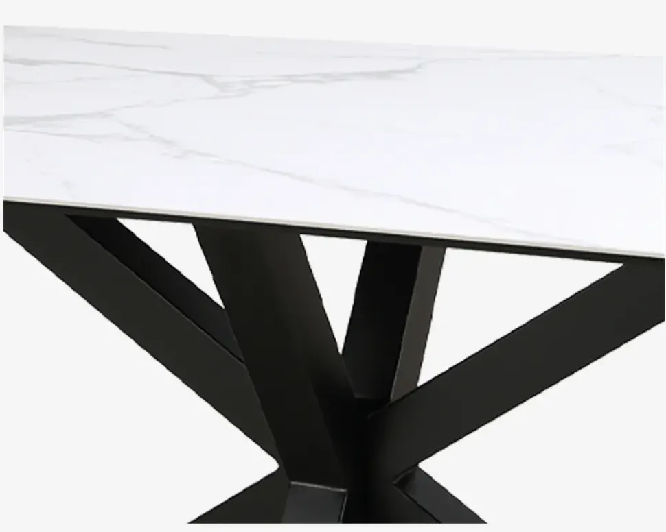 Hvis du ønsker dig et moderne og flot spisebord, i meget slidstærke og robuste materialer, er dette måske bordet til dig. Spisebordet er fremstillet med en bordplade i hvid keramik, som er limet på en glasplade. Dette giver en utrolig stærk overflade, den er både ridsefast og varmebestandig, så en bordplade der tåler det meste. Stellet er i sortlakeret stål, og er med til at understøtte den holdbare bordplade, så du får et spisebord som er solidt plantet på gulvet. Bordet fremstår moderne, og vil passe godt ind i mange forskellige indretninger, ligesom det kan kombineres med en lang række af vores mange spisestuestole. Bordet måler B.100 x L.200 cm, hvilket giver dig 10 – 12 spisepladser, der er ikke mulighed for at udvide bordet yderligere.Spisebordet kræver ingen vedligeholdelse, den daglige rengøring foretages med en klud vredet op i rent vand, husk at tørre efter med en tør klud, så du udgår kalkmærker fra vandet. Bordet leveres usamlet, og alene på grund af størrelsen og vægten bør I være 2 når bordet skal samles. Med en samlet vægt på 80 kg., bør du ligeledes sikre dig at I er 2 hvis bordet skal flyttes, hvis det bliver trukket henover gulvet kan det ridse. Du kan med fordel monterer filtpuder under hvert bordben, kan tilkøbes separat, så du skåner gulvet bedst muligt.• Ingen vedligeholdelse• Mål i cm. H.75,5 x B.100 x L.200• Leveres usamlet• Vægt i alt 80 kg