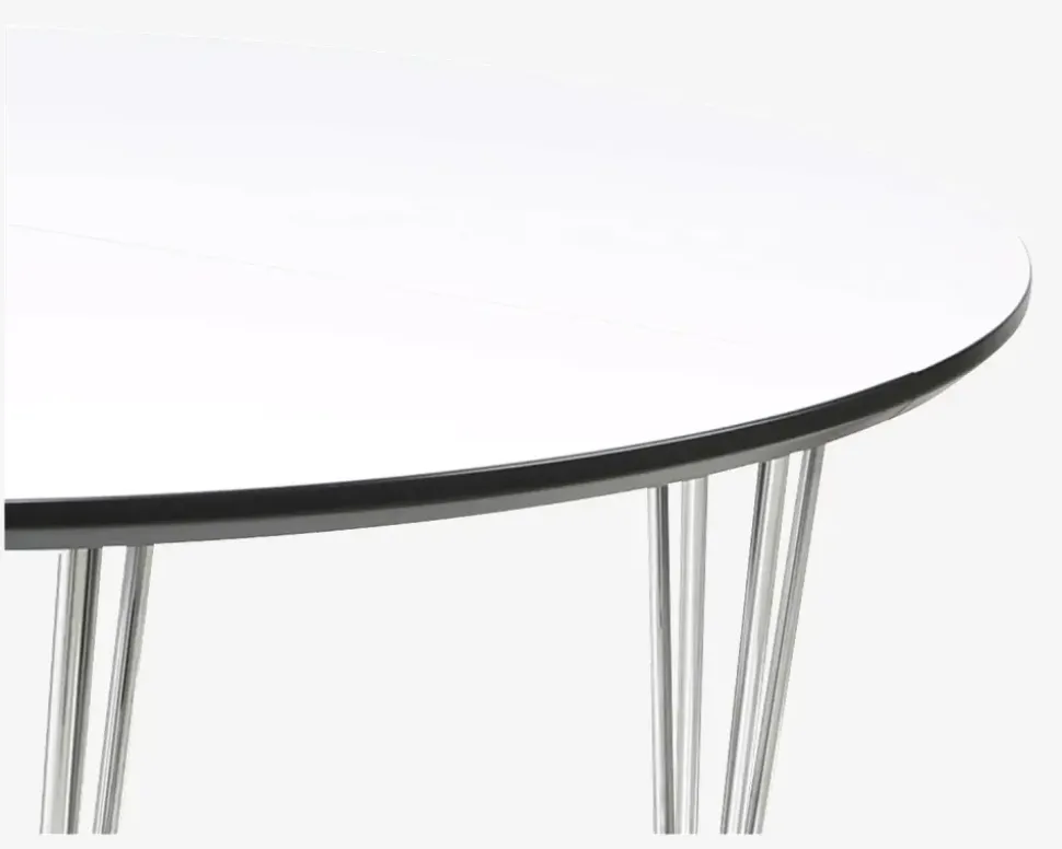 Shape® er en bordserie, som Daells Bolighus har udviklet sammen med en af vores dygtige danske leverandører. Du kan selv sammensætte dit bord som du ønsker, og kan vælge bordplader med udtræk, til spiseborde i forskellige størrelser og træsorter, derudover kan du selv vælge om du ønsker træben eller stålben. Bordserien findes desuden også med bordplader uden udtræk som er velegnet som sofabord, idet du også kan vælge benene i sofabordshøjde.Hele serien er dansk produceret i en meget flot kvalitet, og i høj håndværksmæssig kvalitet. Serien fremstår moderne og tidsløs i designet, og uanset om du vælger bordpladen i massiv træ, eller i laminat kan du til købe ekstra tillægsplader. Alle spisebordsplader leveres som standard med udtræk til 2 ekstra tillægsplader.Dette Shape® spisebord er fremstillet med en bordplade i hvid laminat med sortlakeret kant, og 6 trådsben i krom. Bordet måler Ø.120 cm og leveres med et udtræk så du har mulighed for at udvide bordet med 2 tillægsplader, så du kan få et bord der måler B.120 x L.210 cm og giver plads til 10-12 spisende personer. Laminat bordpladen giver dig en virkelig holdbar og stærk overflade, den er nem at renholde, i det laminat tåler alle former for rengøringsmidler, så længe de ikke indeholder slibemidler.• Bordben i krom• Ekstra tillægsplader varenr. 86367• Mål i cm: H.73 x Ø120• Leveres usamlet