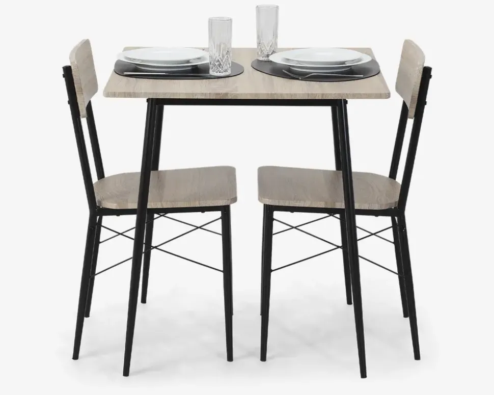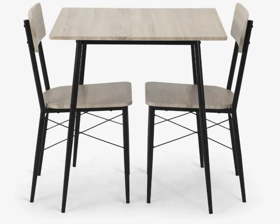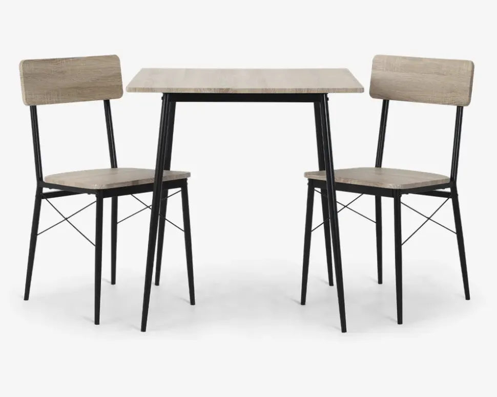 Lille men robust spisebordssæt, som passer perfekt ind i den lille lejlighed, sommerhuset eller kollegieværelset hvor der ikke er meget plads. Sættet består af et spisebord som måler H. 75 x B. 70 x D. 70 cm. samt 2 spisebordsstole med træsæde og træ ryg. Sættet er produceret med overflade i kunstfiner og stål stel.Sættet kræver ingen vedligeholdelse, og rengøringen foretages med en klud vredet op i rent vand. Overdreven brug af vand kan skade overfladen. Sættet leveres usamlet, sæt lidt tid af, der er en del skruer.Vores indkøbere falder til tider over et godt tilbud i en begrænset mængde. Vi sælger disse varer efter først-til-mølle-princippet, så længe lager haves. Da varerne ikke er en del af vores faste sortiment, vil de ikke blive markedsført med før-priser, men til en fast lav pris. En partivare koster det den koster – det synes vi er mest ærligt.Partivare er efter først-til-mølle-princippet, så skynd dig at slå til, inden der er udsolgt!