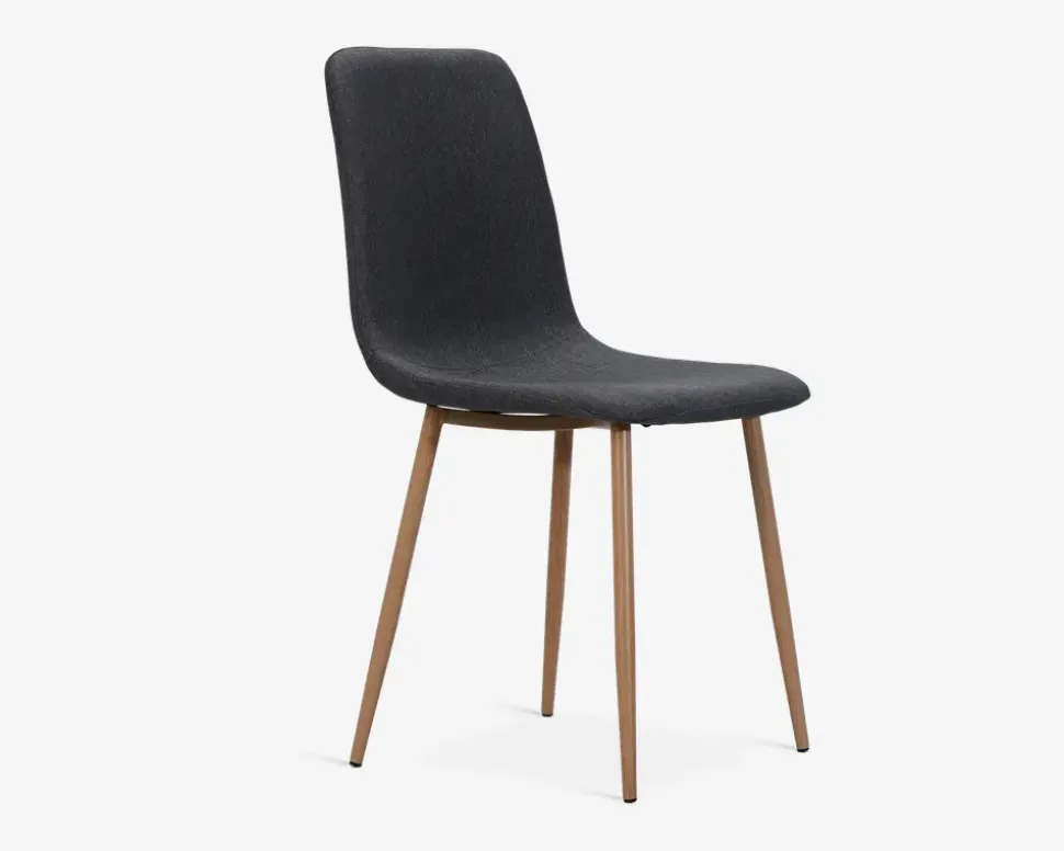 En flot lille spisestuestol med masser af komfort. Stolen er velegnet både som køkkenstol, spisebordsstol eller som ekstra stol til når der er gæster. Stolen har et moderne design, som passer ind i mange danske hjem. Stolen er fremstillet i gråt møbelstof, med ben i stål med 3D egelaminering. Stolen findes i 2 farver. Spisestolen kræver ingen vedligeholdelse, og rengøringen foretages med en klud vredet op i rent vand. Stolen leveres usamlet, men samles uden problemer.Sælges i kasser af 4 stk.