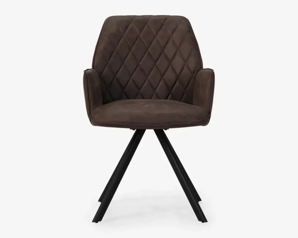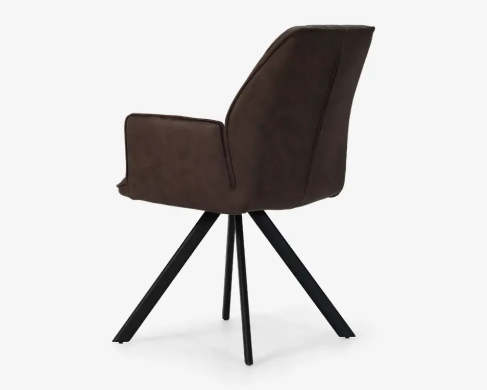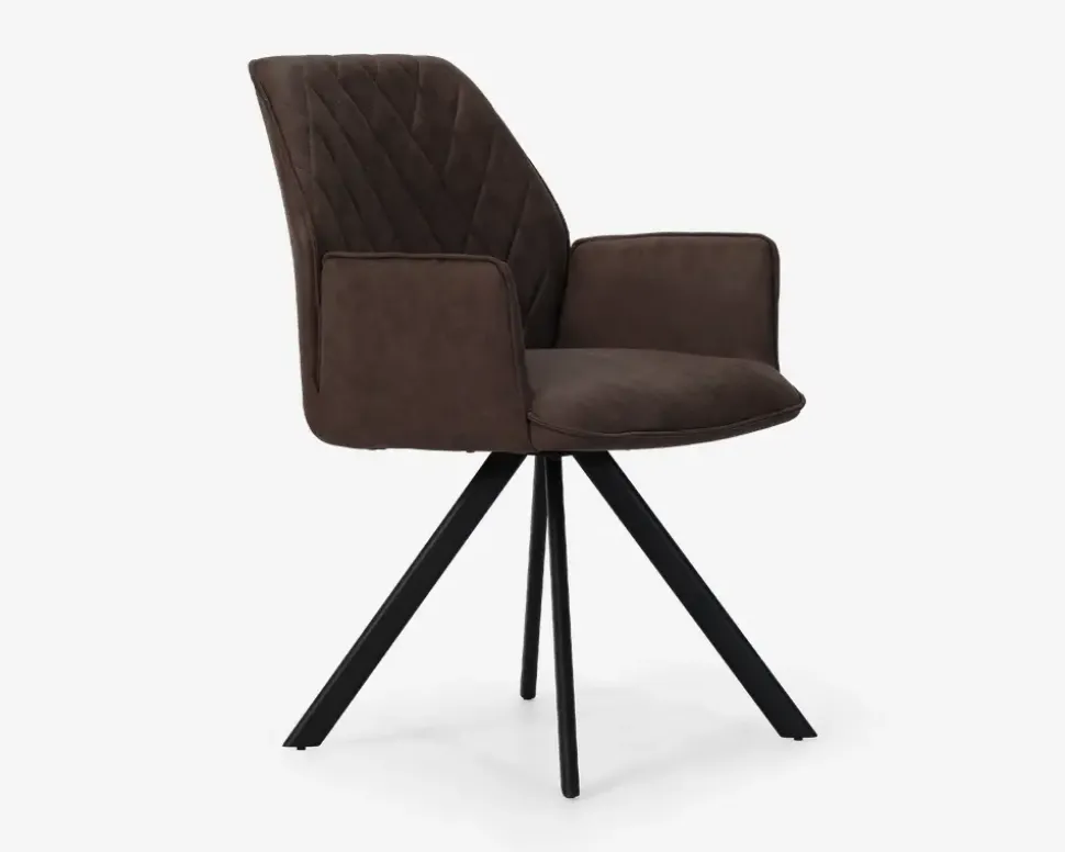 Spisestuestol med armlæn, og en fremragende siddekomfort. Stolen passer i designet flot sammen med Plankeborde, eller andre lidt større spiseborde. Spisestuestolen har en virkelig god siddekomfort, og armlænene er med til at understøtte den gode siddekomfort, og stolen er perfekt til de lange middage eller spilleaftener i familien.Spisebordsstolen er fremstillet i en brunt mikrofiber, med et lidt antikt udseende, hvilket er perfekt hvis dit spisebord er et plankebord. Stellet er i sortlakeret stål, og du kan med fordel monterer filtdupper under stolenes ben, da stolen i sagens natur er tung, mens designet stadig er elegant.Stolen kræver ingen vedligeholdelse, og er nem at holde ren, alt du behøver er en klud vredet op i rent vand. Pas på benene når du støvsuger, så du undgår at ridse dem. Stolen sælges i pakker af 2 stk.• Højde til armlæn overkant er 64,5 cm.