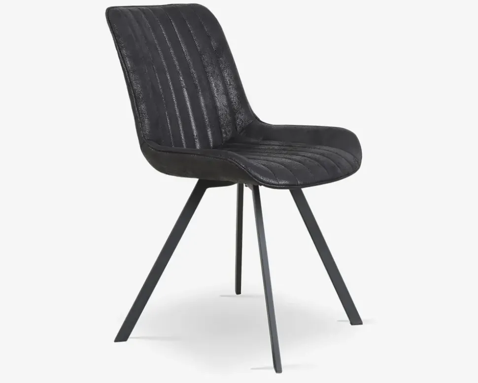 Her har du en flot spisestuestol med god siddekomfort Stolene er fremstillet i sort kunstlæder, med et antikt præg, mens benene er i sort stål. Spisestuestolen giver en god siddekomfort, og er behagelig at sidde i, også over længere tid.Stolen kræver ingen vedligeholdelse, og rengøres med en klud vredet om i rent vand. Du bør være opmærksom når du støvsuger, så du undgår at ridse stellet.