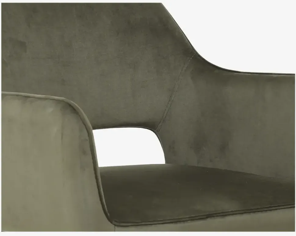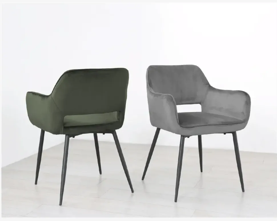 En flot spisebordsstol med armlæn som giver en fremragende siddekomfort, både når du spiser, og når du slapper af efter middagen. Spisestolens design gør at du både kan få glæde af armlænet når du slapper af, men samtidig ikke oplever det som generende mens du spiser. Stolens flotte design gør den perfekt sammen med de meget moderne langborde i eg, men den kan også bruges til moderne spiseborde i minimalistisk design, uanset hvordan du vælger at indrette dig, vil stolens grønne farve kunne pifte op i indretningen.Spisebordsstolen kræver ingen vedligeholdelse, og rengøringen foretages med en støvsuger og en klud vredet op i rent vand. Den leveres usamlet, men samles nemt hvis du følger den vedlagte samlevejledning. Spisestuestolen sælges i pakker af 2 stk.Mål til overkant armlæn: 63 cm