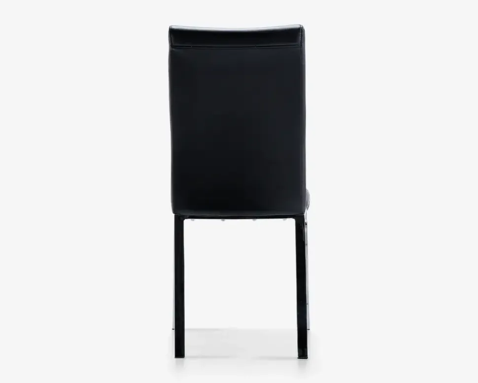 En god højrygget spisebordsstol som er fremstillet med sæde og ryg i sort kunstlæder, og ben i krom. Spisestolen kræver ingen form for vedligeholdelse, og den rengøres nemt med en klud vredet op i rent vand, husk at tørre efter med en blød tør klud så du undgår striber.Spisebordsstolens høje ryg og kraftige sædepolstring, betyder at du får en god siddekomfort, som du uden problemer kan sidde i, i lang tid. Stolens vægt betyder at den nemt kan trækkes ind og skubbes væk fra bordet, når du skal rejse dig. Vi gør opmærksom på at du ikke bør vippe på stolen, da dette både kan forårsage skade på dig, og på produktet. Stolen sælges i pakker af 2 stk., og leveres usamlet.