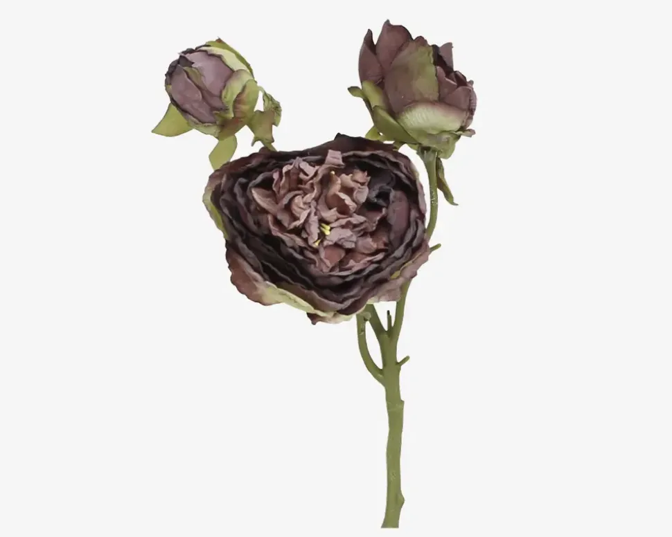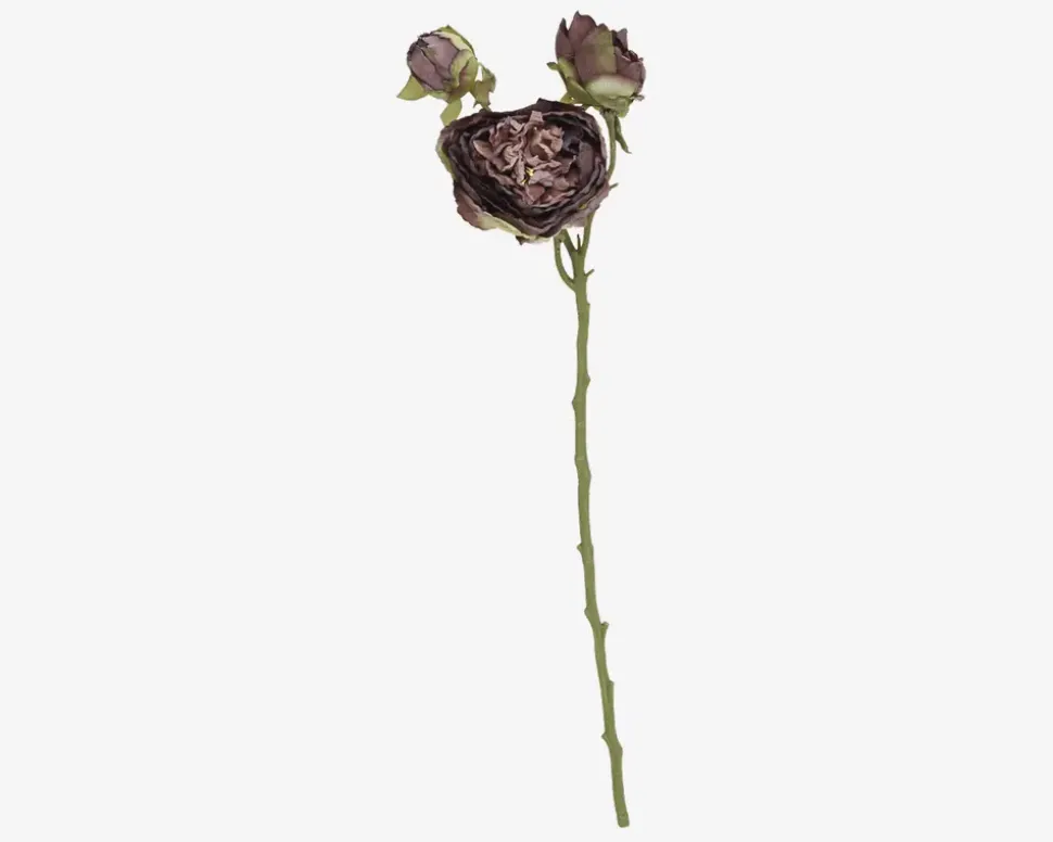 Denne kunstige blomsterstilk med pæoner vil fortrylle dig med sin elegance og skønhed. Med tre smukke knopper er denne pæon blomst klar til at springe ud i fuld blomst og sprede sin vidunderlige charme. Den bløde og delikate farve skaber en romantisk atmosfære og vil tilføje et strejf af elegance til ethvert rum i dit hjem.• Mål i cm: H.65• Farve: Brændt lilla