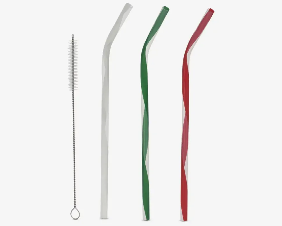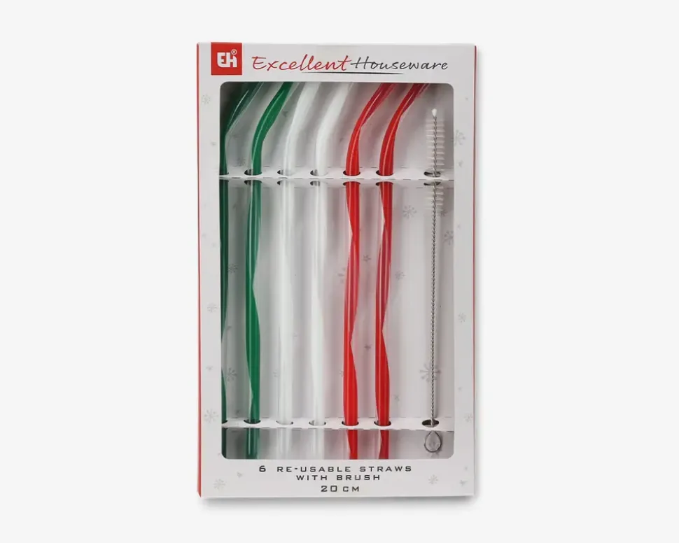 Sugerør i hård plast der kan genanvendes. Der medfølger børste så de nemt kan rengøres.