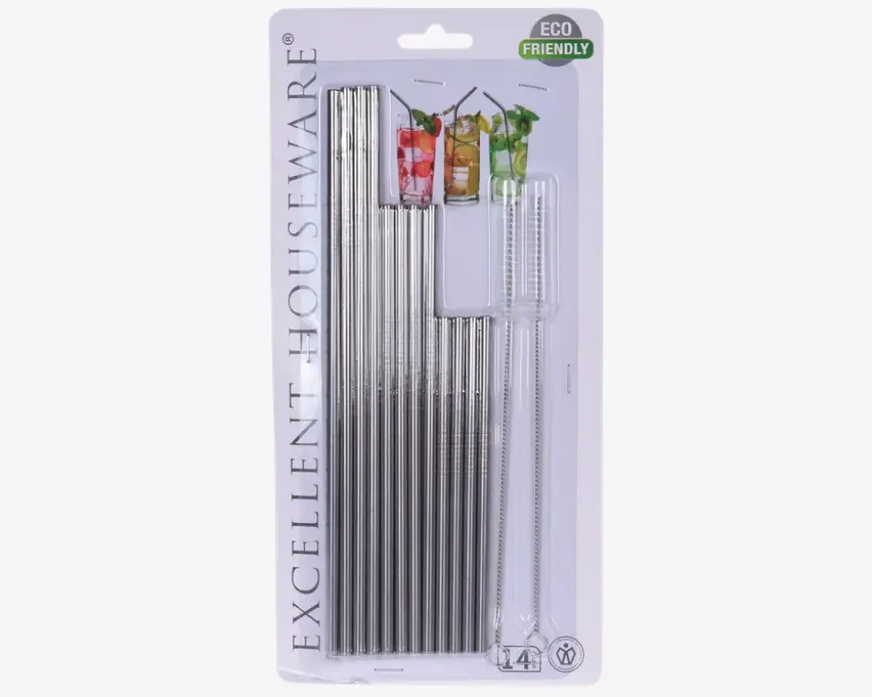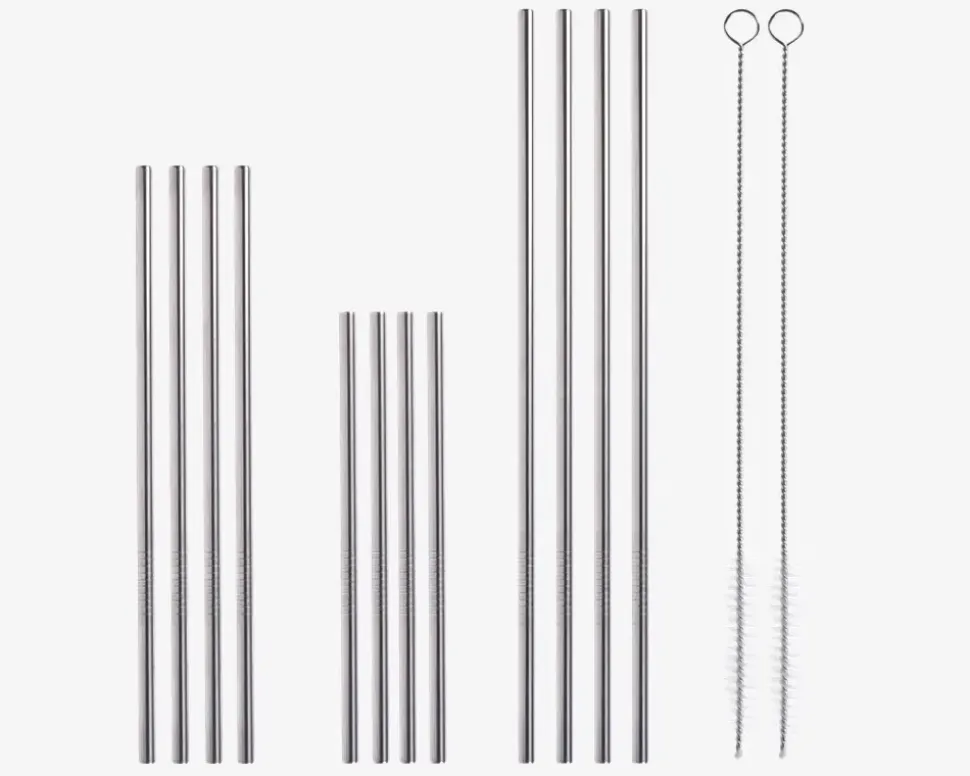 Genanvendelige sugerør med børste til at rengøre. Sugerørene kommer i 3 forskellige størrelser. • Materiale: rustfrit stål