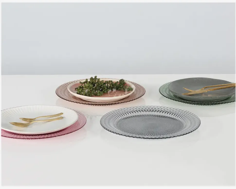 Farverig og stor tallerken i glas. Brug den til den store middag, eller som anretningsfad og bring et friskt pust af farver ind på bordet. Kan også bruges som en del af indretningen på f.eks. skænken med lys eller blomster på. • Mål i cm: Ø.33 x H.2• Tåler opvaskemaskine