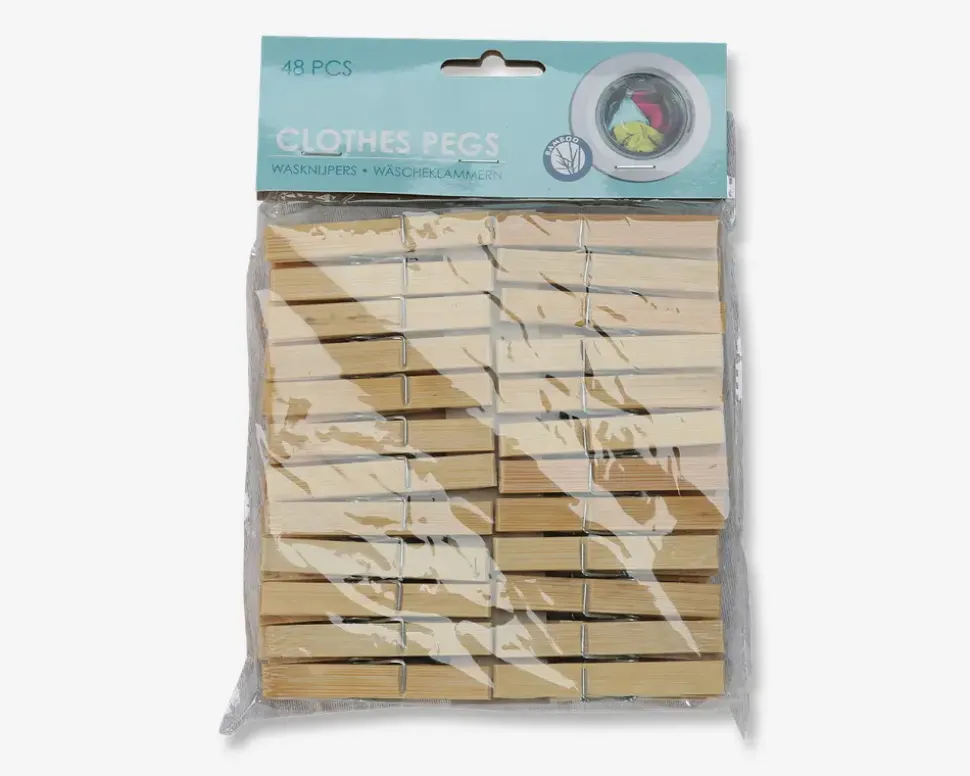 Disse klemmer i bambus er praktiske. De er perfekte til at hænge vasketøj op eller til at organisere papirer og noter. Klemmerne kommer i en pakke med 48 stk.