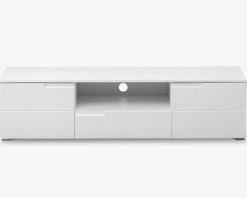 Tv-bord i et smart og moderne design. Det leveres med 2 skabe og 1 stor og rummelig skuffe, som er kendetegnet ved at de er grebsfri. Tv-bordet er i hvid/hvid højglans kunstfiner. Leveres usamlet men samles let.• Hvid/hvid højglans kunstfiner• Rigtig god plads• 2 skabe og 1 stor skuffe• Leveres usamlet men samles let• Mål i cm. B.165 x D.40 x H.42