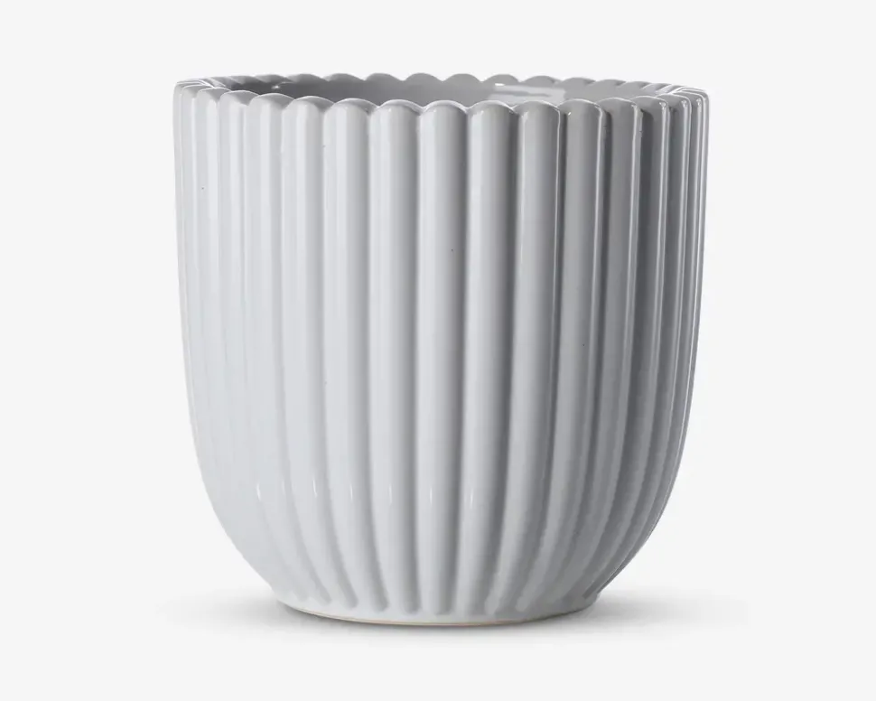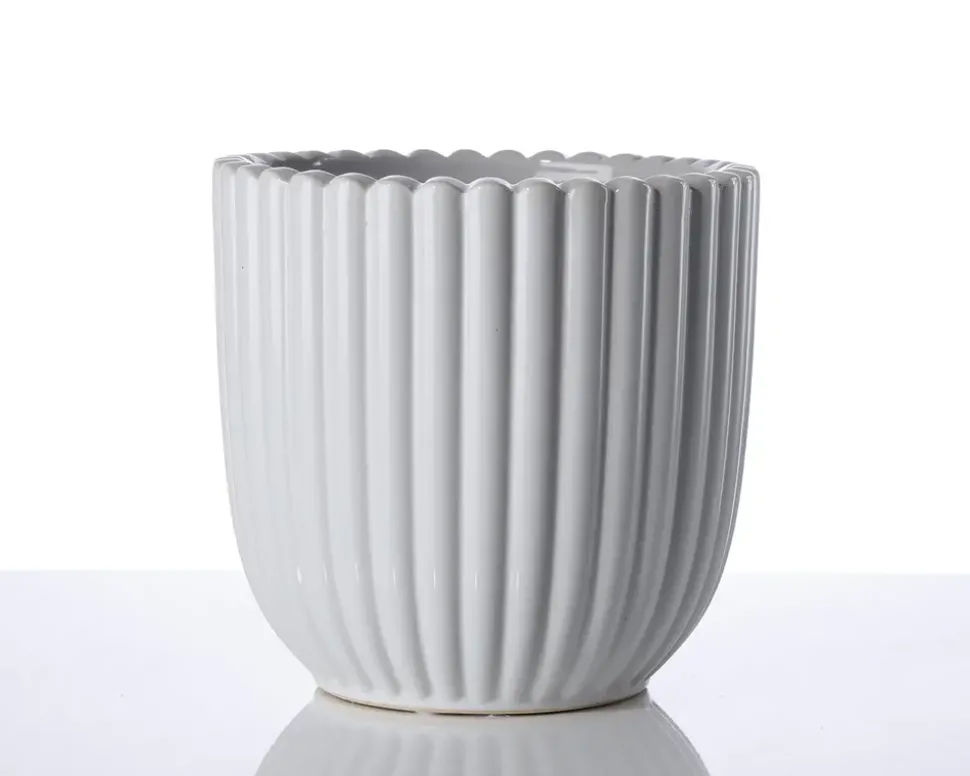 Urtepotteskjuler i serien Nobel i hvid keramik. Skjuleren har et enkelt design, der passer ind i både moderne og klassiske hjem. Perfekt til at fremhæve dine planter i vindueskarmen, på hylden eller bordet.Vær opmærksom på at der kan dannes kondens under potten efter påfyldning af vand, og dette kan skade underlaget. Vær derfor ekstra opmærksom på dette ved sarte og skrøbelige overflader.
