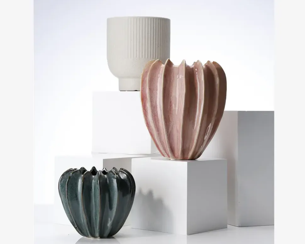 Dekorativ urtepotteskjuler lavet i keramik og i farven grøn. Potterne har et moderne og farverigt design, der giver liv og personlighed til rummet. Perfekt til blomster eller grønne planter, og velegnet som stilfuldt element i stue, køkken eller på altanen.