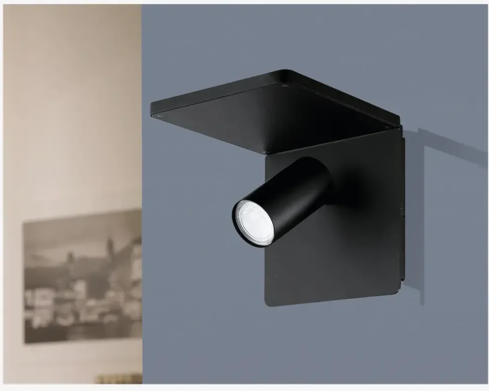 Væglampen Ciglie fra Eglo er en innovativ og praktisk lampe med et moderne design i sort farve. Denne væglampe er udstyret med en trådløs oplader, der gør det nemt og bekvemt at oplade dine elektroniske enheder. Ciglie væglampen er ideel til soveværelset, kontoret eller andre områder, hvor du har brug for både belysning og muligheden for at oplade dine enheder. Den giver et behageligt lys og tilføjer samtidig en praktisk funktion til dit rum. Der er en tænd/sluk knap under lampen, for nemt at styre om du ønsker lys eller ej. • Mål i cm: H.18 x B.18 x D.21• Farve: Sort• Materiale: Aluminium, stål• Fatning: GU10 4,5W inkl. (Kan udskiftes)• Lumen: 345• Kelvin: 3000• Levetid i timer: 15.000• Energiklasse: F• Ledningslængde: 200cm, sort