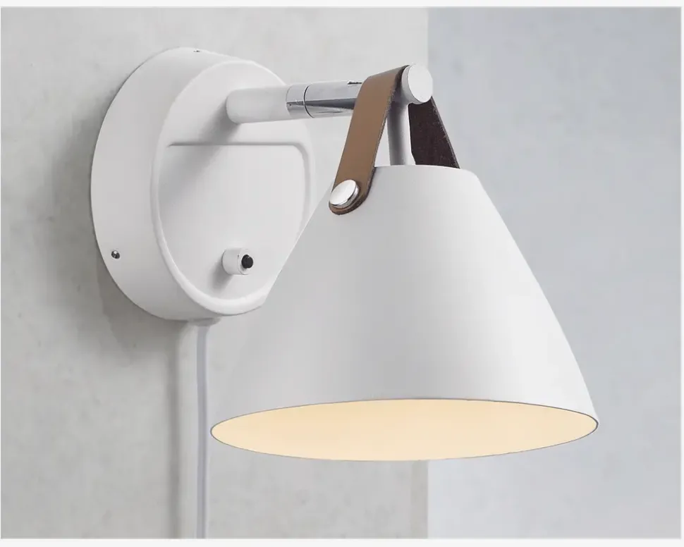 Metal og læder går godt i spænd med den lette nordiske stil. Med Strap virker det indlysende – lige så indlysende som at en læderrem har lagt navn til nordisk lampedesign. Den smalle og elegante læderrem giver Strap et både varmt og råt udtryk, der balancerer mellem det klassiske og det industrielle. Der medfølger to læderremme i henholdsvis brun og sort, så det er op til dig at give Strap det endelige look.• Mål: Ø17 x H17 x D21 cm• Farve: Hvid• Materiale: Metal• Fatningstype: GU10 maks. 60W• Ekskl. Pære• Inkl. Ledning• Inkl. Brun og sort læderrem• Kan dæmpes hvis du har en lysdæmperkontakt