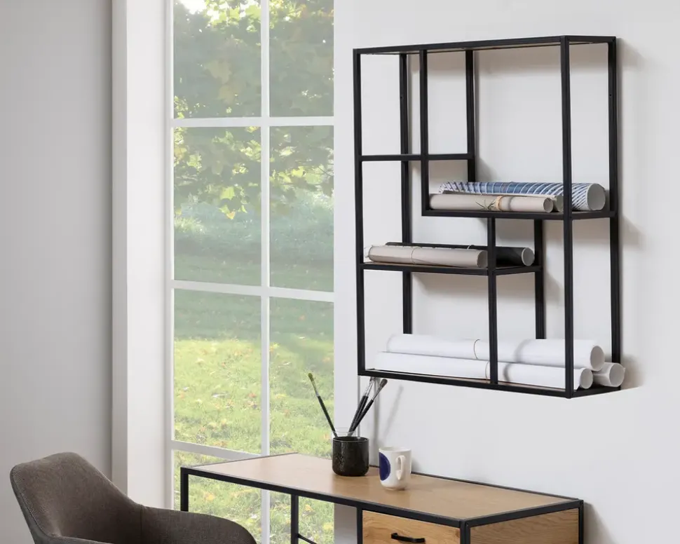 Smart, enkel og moderne vægreol til ophæng. Er let og elegant og med sit asymmetriske udtryk kan den rumme mange ting på en spændende måde. Reolen er lavet med et sort lakeret metalstel, som gør at reolen kan bære det meste. Hylder er i sort ask melamin. Reolen leveres usamlet men samles nemt.I denne serie kan der fås mange forskellige møbler, som gør det muligt at møblere de fleste rum i hjemmet med lige netop denne serie. Serien består af meget ”lette” møbler som kan give et enkelt og flot udtryk overalt i hjemmet. Flere typer sofaborde, tv-borde, reoler, serveringsvogne, skriveborde. Me denne serie er det nemt at indrette sig hyggeligt og praktisk på samme tid.• Enkel og moderne vægreol• Sort ask melamin hylder• Sortlakeret metalstel• Asymmetrisk udtryk• Leveres usamlet, men samles nemt• Mål i cm. B.75 x D.20 x H.91