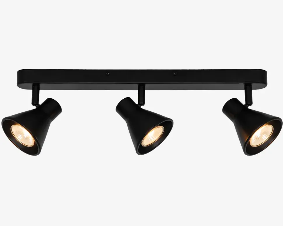 Væglampen Eik fra Nordlux er en stilfuld og moderne lampe, der vil tilføje et elegant touch til dit hjem. Lampens design er enkelt og minimalistisk, hvilket gør den velegnet til mange forskellige indretningsstile. Lampen kan kippes og er derfor ideel som lampe i entre, i stuen til de mørke områder eller i køkkenet.• Mål i cm.: H.15 x B.45 x D.13,5-15,5 x Ø.8,5• Farve: Sort• Fatning: GU10, maks 3x35W, ekskl.