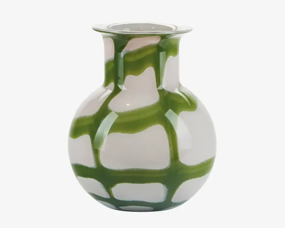 Fin og elegant vase fra Bahne. Vasen er med et unikt mønster og er perfekt at skabe fokus på en flot buket blomster. Brug vasen på spisebordet som et smukt centerstykke med blomster eller pynt reolen og brug vasen som et dekorativt element i sig selv.