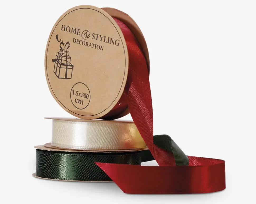 Dekorativt bånd i polyester med en længde på 300 cm. Velegnet til gaveindpakning, kreative projekter eller som pynt på juledekorationer og kranse. Nem at forme og arbejde med og er perfekt til både hobby og festlig indretning.