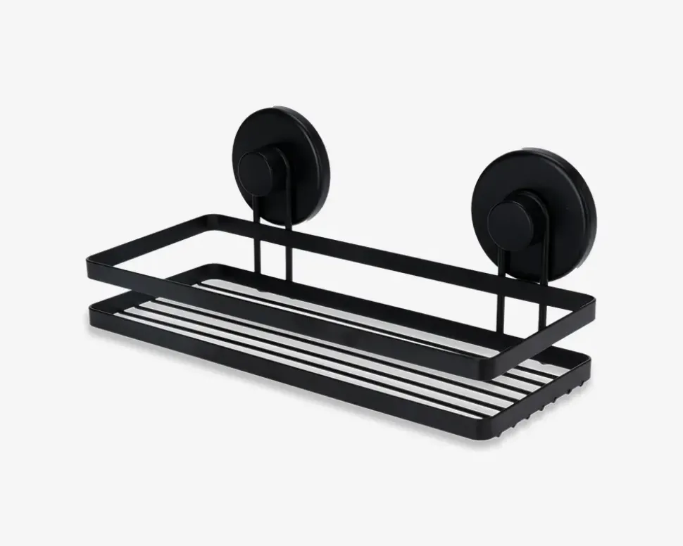 Praktisk badeværelseshylde, der nemt monteres med en selvklæbende bagside, helt uden brug af skruer eller værktøj. Perfekt til opbevaring af sæbe, shampoo eller andre produkter i bruseområdet eller ved håndvasken.