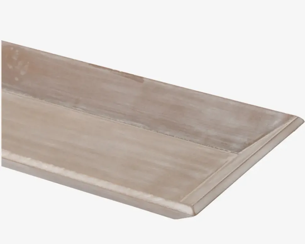 Bakke i træ, som har flere anvendelsesmuligheder. Brug evt. bakken i køkkenet til olier og krydderier eller som flot dekorationsfad på stuebordet. Du vil også opleve at den er fin, når du skal servere på terrassen eller andre steder. • Mål i cm: B.20,5 x L.40• Farve: grå• Materiale: træ