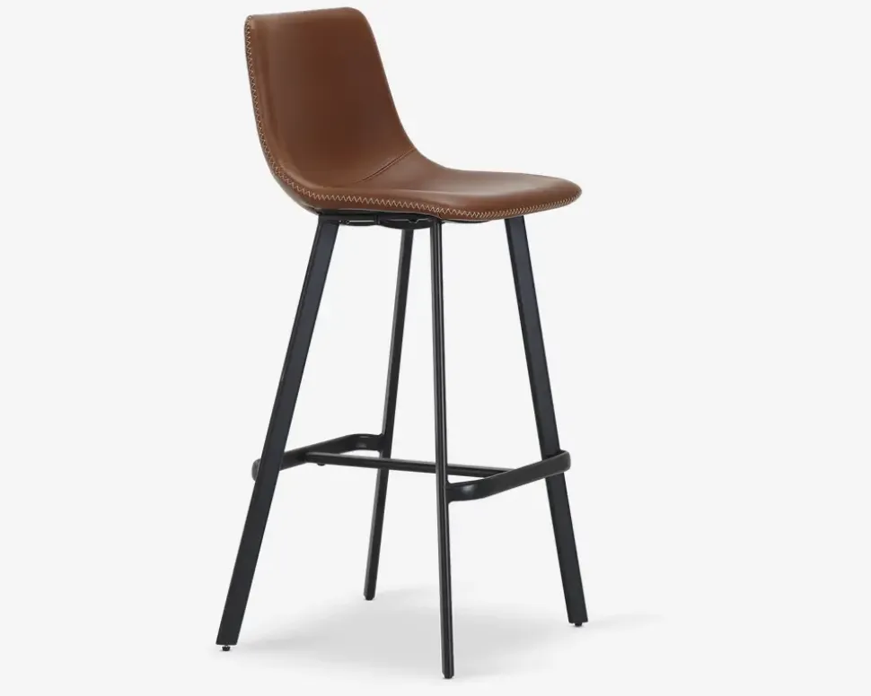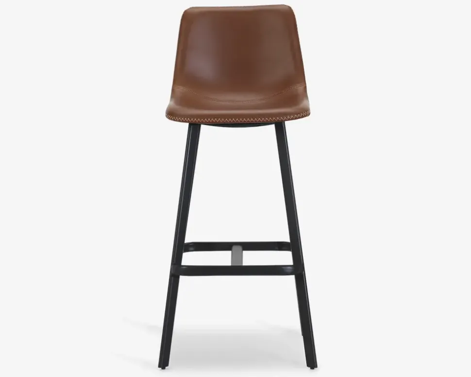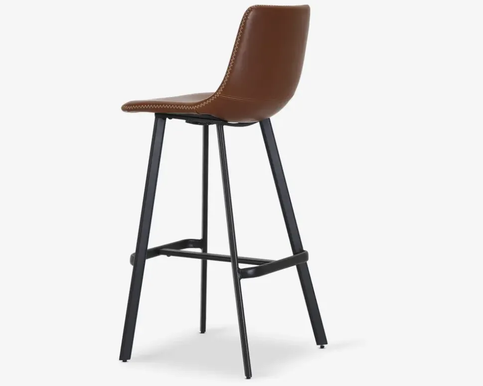 Denne barstol er fremstillet med sæde og ryg i vintage kunstlæder, som for den til at fremstå lidt rustik i looked. Barstolen vil passe rigtig godt ind i baren i kælderen, som er indrettet maskulint og råt. Den cognacs farvede kunstlæder, kombineret med zigzag syninger, og det sorte pulverlakerede stel får du her en barstol som vil passe ind i den klassiske hjemmebar.Barstolen kræver ingen vedligeholdelse, og rengøres nemt med en klud vredet op i rent vand.