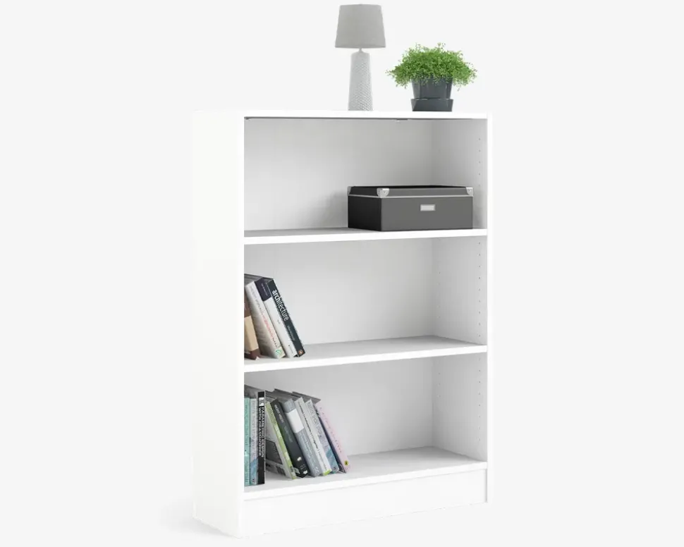 Basic er en serie af bogreoler som fremstilles i hvid og lys eg kunstfiner. Reolerne findes i 2 højder og i 2 bredder og kan sammensættes som man selv ønsker og har behov for. Dørene er flotte rammedøre som fås med ramme eller med glas.Bogreol i hvid.• Smart serie af bogreoler• Hvid og eg kunstfiner• Sammensættes efter egne ønsker og behov• Leveres usamlet men samles let• Mål i cm. B.79 x D.27 x H.107