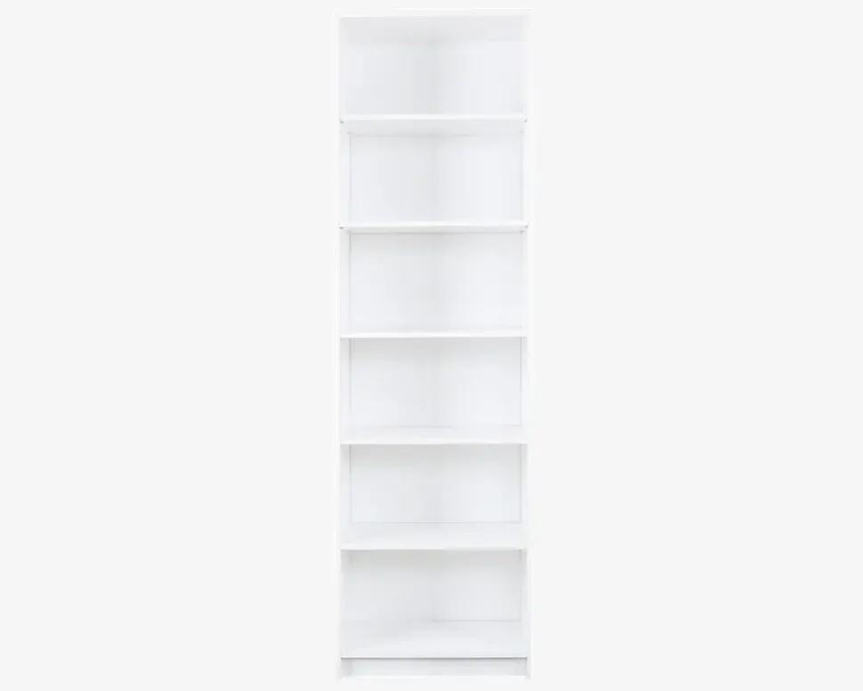 Bogreol i hvid kunstfiner med 4 løse hylder der kan justeres og 1 fast hylde. Reolen er fremstillet i 16 mm spånplade og toppladen med rundet forkant er i 22 mm. Reolen fås også i lys eg kunstfiner og i 3 andre højder. Leveres usamlet, men samles let.• Bogreol i hvid kunstfiner• Med 4 løse hylder og 1 fast.• 16mm spånplade• Leveres usamlet, men samles let• Mål i cm. B.59,5 x D.28 x H.202