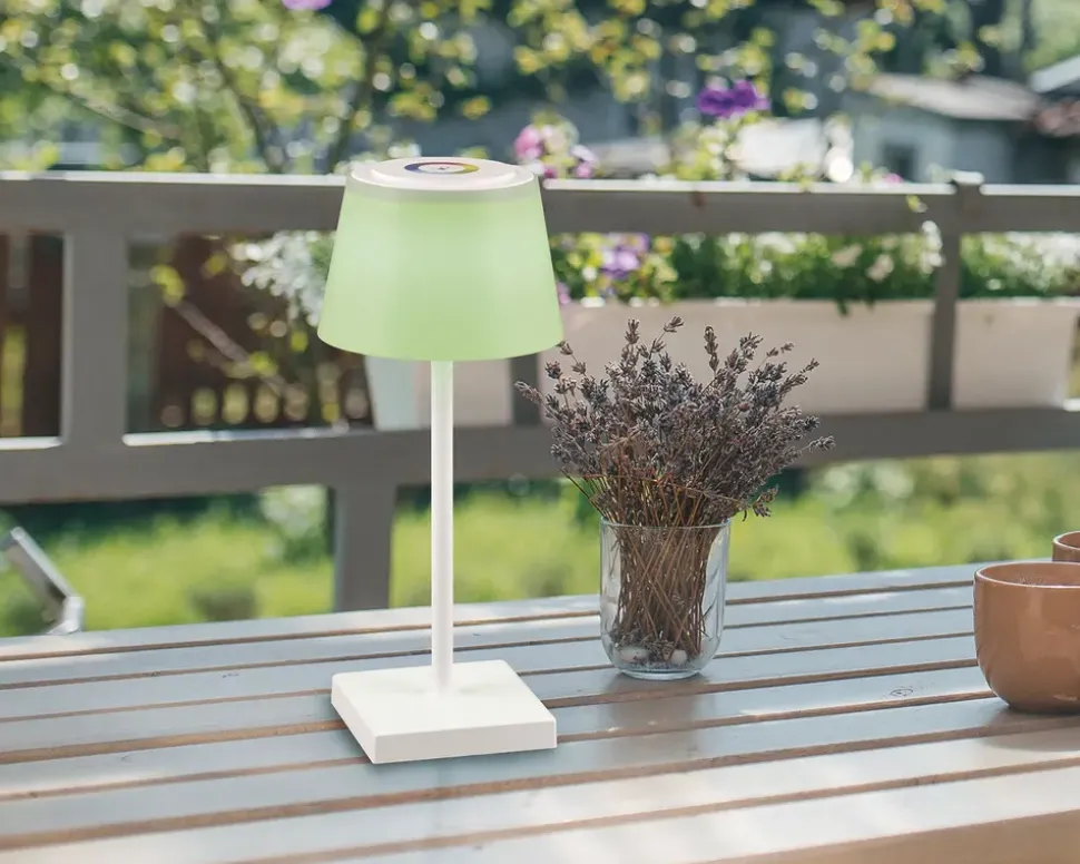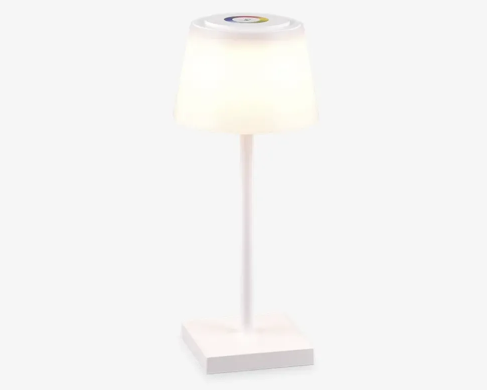 Sanchez er en stilren bordlampe, hvor hele skærmen lyser op og skaber et blødt, ensartet lys, der spreder hygge i rummet. Med en højde på 30 cm og en diameter på 13 cm passer den perfekt på natbordet, i vindueskarmen eller som dekorativ belysning i stuen. Samtidig kan den skifte farve, så du får lige den belysning du ønsker. Den er på batteri og kan dermed placeres hvor du ønsker.