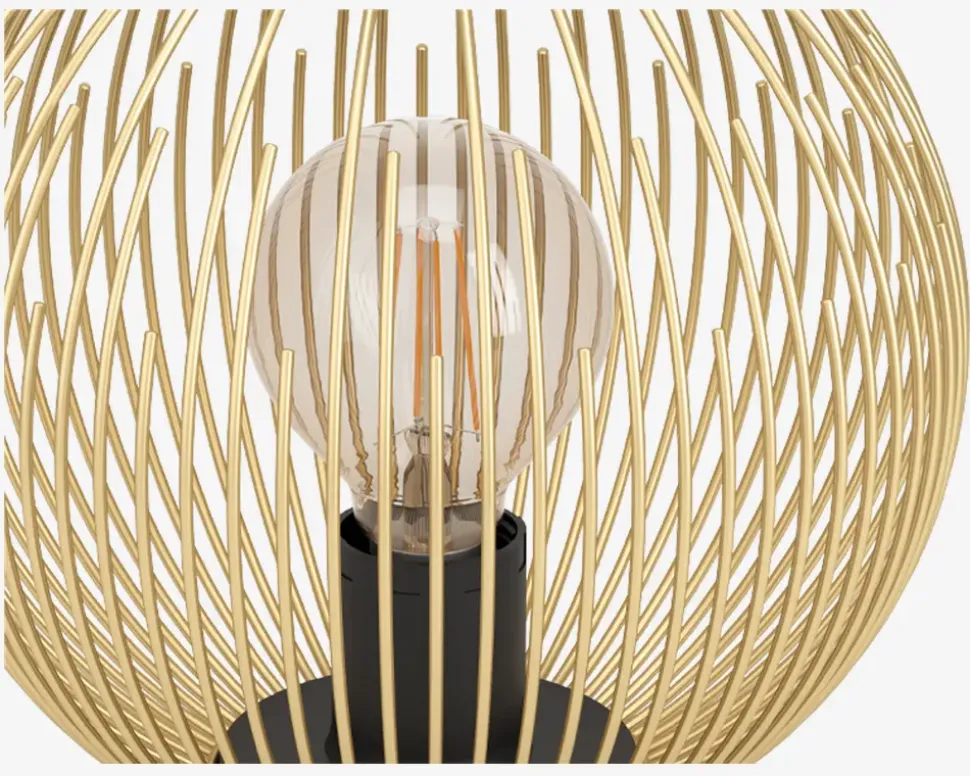 Venezuela er en bordlampe fra Eglo der med sit unikke design skaber et flot lys. Vælg evt. en dekorativ globepære, der vil skabe et fint udtryk. Kan placeres flere steder i hjemmet, for eksempel i stuen. Lampen kommer i flere varianter. • Mål i cm: Ø.23,5 x H.22,5• Farve: sort/guld • Materiale: stål• Fatning: E27, Max 40W• Ekskl. Lyskilde• IP20