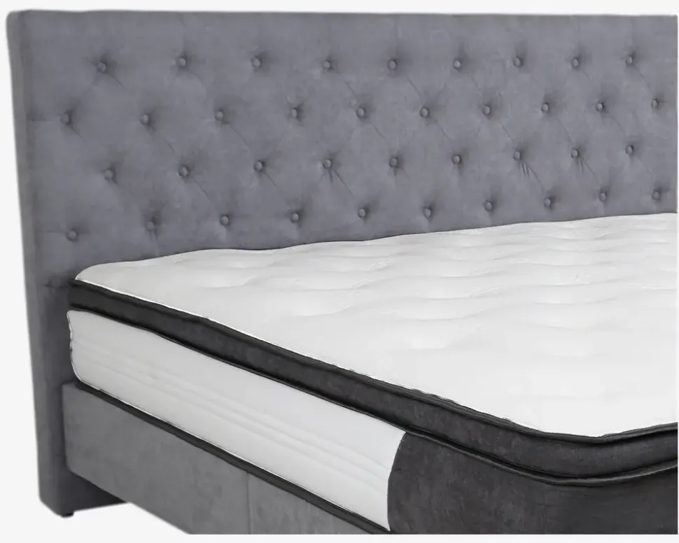 Daells Bolighus tilbyder her en komplet dobbelt seng i 180 x 200 cm. Sengen består af en sengeramme i gråt møbelstof, lamelbund i nåletræ, en springmadras med 210 posefjedre pr. m² inddelt i 3 komfortzoner. Polstringen på den side af madrassen du ligger på består af 4 cm koldskum, 3 cm visco skum og 3 cm polyether skum. Selve sengerammen leveres usamlet, men samles nemt, hvis I følger den vedlagte samlevejledning, du kan opleve at lamelbunden er vredet en smule under transporten, men dette vil udligne sig så snart sengen er samlet og taget i brug. Sengerammen er beklædt med slidstærkt møbelstof i grå, det rengøres nemt med en støvsuger, eller en klud vredet op i rent vand. Springmadrassen er fremstillet med et fjedreindlæg bestående af 210 posefjedre pr. m² inddelt i 3 komfortzoner, en indbygget topmadras med i alt 10 cm polstring, og betrukket med et eksklusivt blødt betræk. Madrassen er medium. Da madrassen ikke kan vendes, og betrækket ikke kan vaskes anbefaler vi at du benytter et skånemadras oven på madrassen til hver en tid, dette vil forlænge levetiden på madrassen, samtidig med at du får mulighed for at vaske den jævnligt. Du vil her opleve en seng som giver dig en god komfort, du får fordelen af en stor madras, og endelig får du en flot seng i soveværelset.Når du får udleveret/leveret sengen skal du være opmærksom på at madrassen er vakuumpakket, og derfor skal bruge små 24 timer til at rejse sig. Det betyder ikke at du ikke kan sove på madrassen, blot at den ikke er tilbage i sin oprindelige form, før ca. 24 timer efter du har åbnet pakken.• Komplet dobbeltseng i 180 x 200 cm• Sengeramme med lamelbund, springmadras med 210 posefjedre pr. m²• 3 komfortzoner• God støtte til kroppen• Dejlig medium komfort• Nem at samle• Vakuumpakket madras i 180×200 cm• Mål i cm.: H.115 x B.186 x L.212