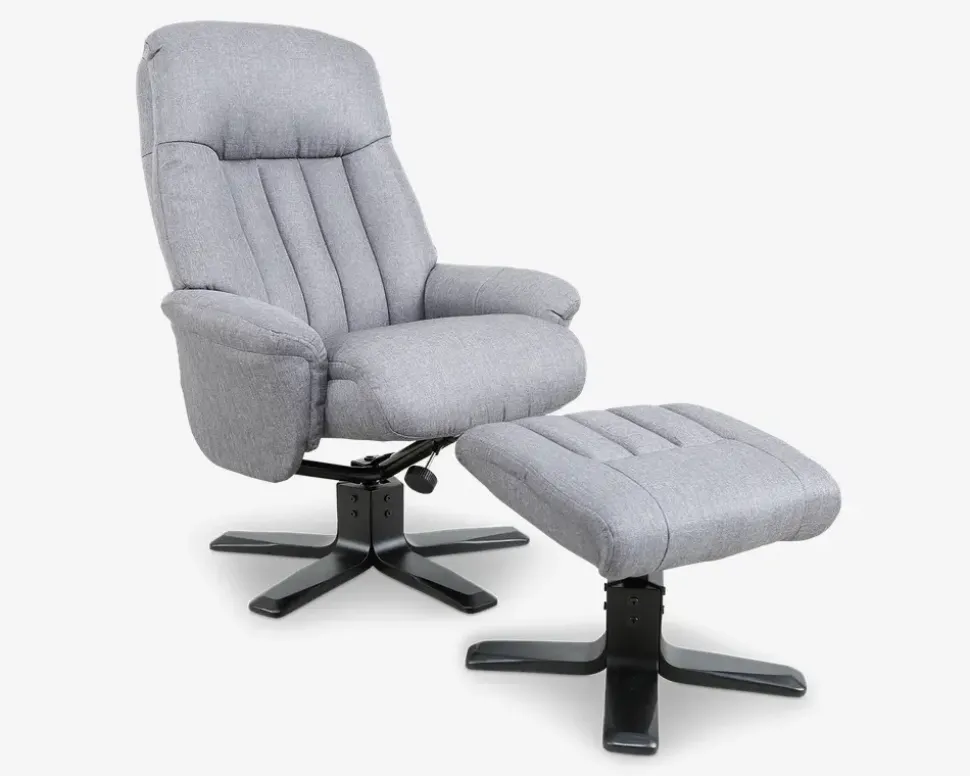 Flot og klassisk drejestol inkl. fodskammel. Stolen har både dreje og vippefunktion som manuelt kan reguleres i hårdhed efter eget ønske. Stolen har koldskum i sædet hvilket sikrer dig en rigtig god sidde komfort samtidig med lang holdbarhed i sædet.Stolen er monteret slidstærk møbelstof. Flot massiv sortlakeret træfod.• Inkl. Fodskammel• Dreje og vippefunktion• Slidstærkt møbelstof• Koldskum i sædet• Dejlig siddekomfort• Mål i cm: B.78 x D.85 x H.49/110