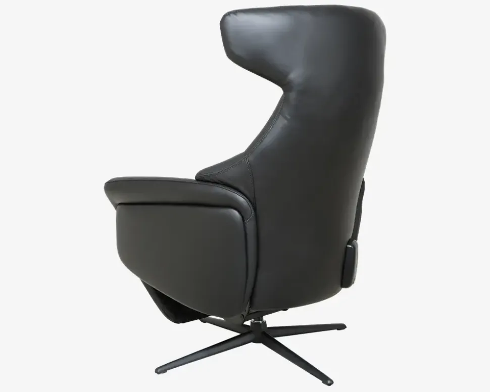 Drejestol m/Indbygget Fodskammel Sort Læder