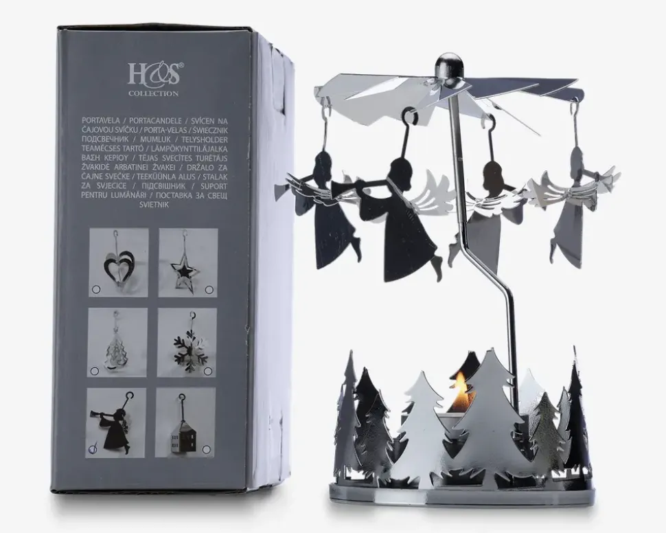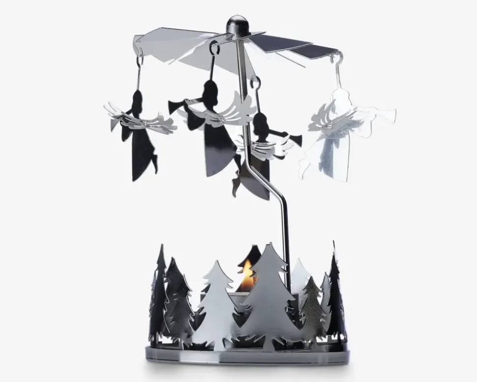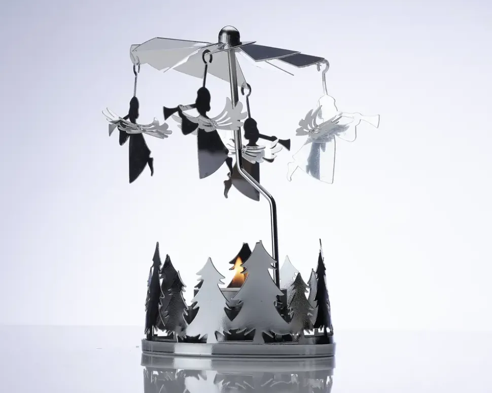 Englespil i klassisk design, med en højde på 13 cm. Når du tænder et stearinlys under, begynder englene at dreje rundt i takt med varmen. Det skaber en stemningsfuld dekoration, der bringer hygge og tradition ind i hjemmet. Perfekt til julens stille stunder eller som en særlig gave.