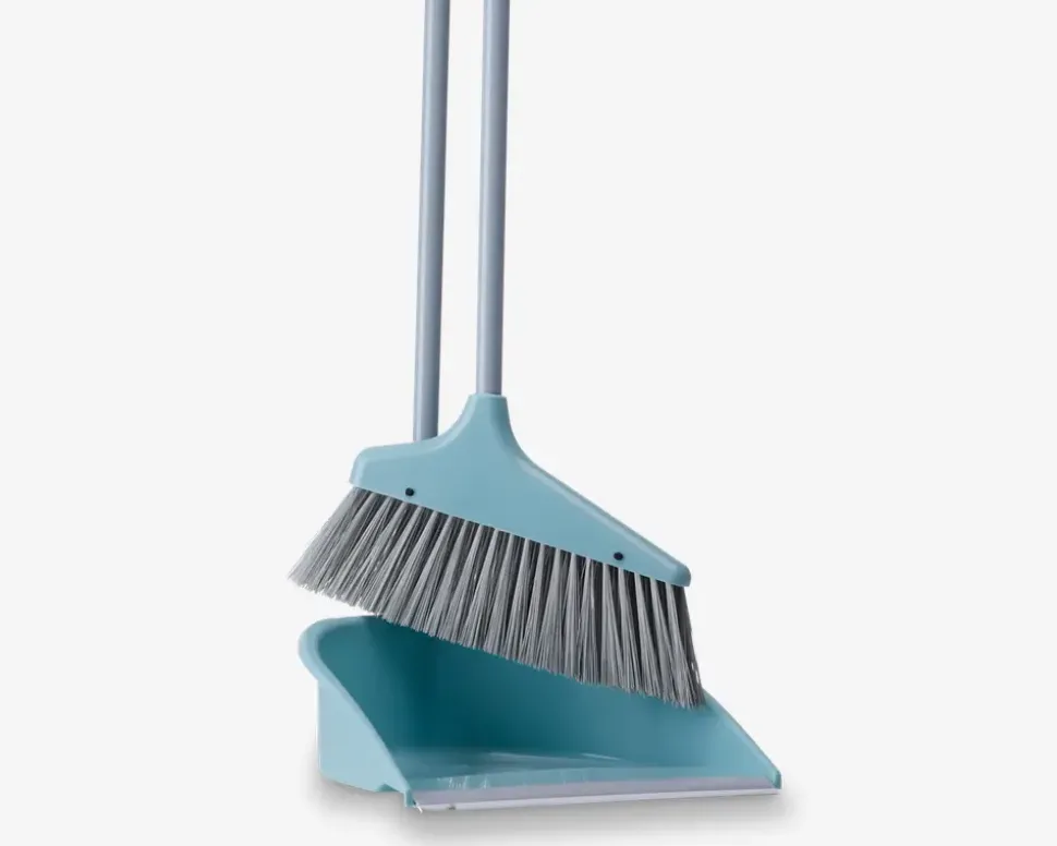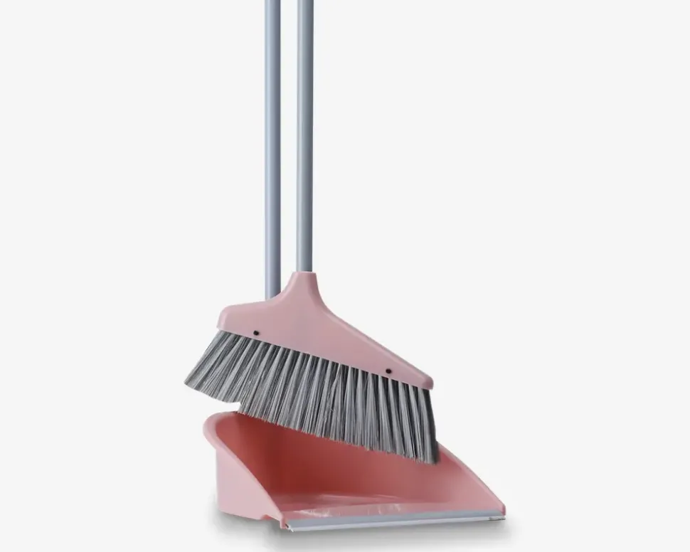 Fejebakkesæt med skaft der har en højde på 83 cm der kommer i assorterede farver. Fejebakken er udstyret med en gummikant, der gør det lettere at få skidtet fejet op på bladet. BEMÆRK, at der ikke kan vælges farve ved køb i webshoppen.