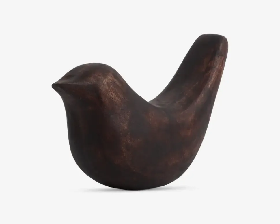 Dekorativ fugl lavet i mango træ med en varm brun farve. Den naturlige træstruktur giver figuren et unikt og charmerende udtryk, der passer perfekt ind i en hyggelig og stilfuld indretning. Placer den på en hylde, i vindueskarmen eller som en del af en dekorativ opstilling.
