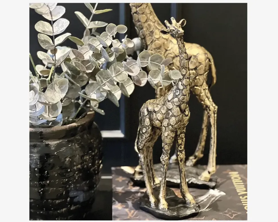 Giraf figur på fod, der er fremstillet i polyresin. Figuren har et elegant og enkelt udtryk og er iøjnefaldende i hjemmets indretning. Kan placeres på en reol, kommode eller i vindueskarmen for at tilføje et eksotisk og kunstnerisk præg til rummet.