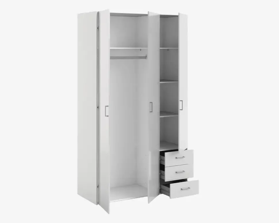 Garderobeskab Space m. 3 Låger og 3 Skuffer