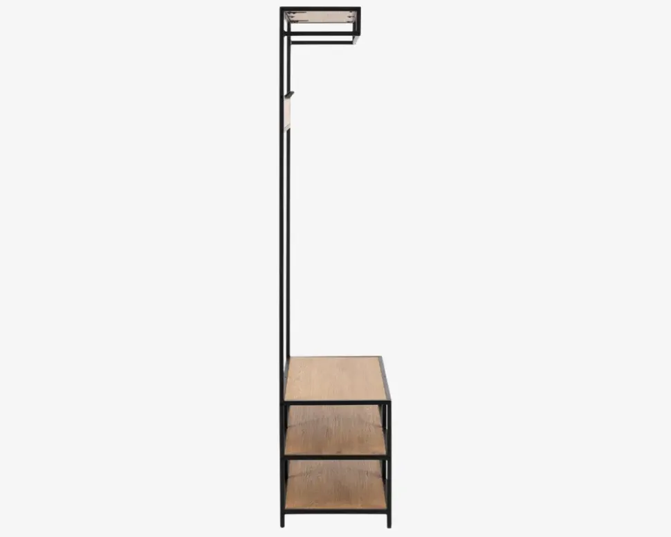 Seaford garderobestativet er perfekt til entreen, stativet har både knager, plads til bøjletøj, og 3 hylder til fodtøj eller overtøj. Endelig har garderobestativet også en hattehylde, så kort fortalt kan du få opbevarede alt i entreen med dette flotte møbel, som også er dekorativt.Garderobestativet leveres usamlet, men samles uden de store problemer, hvis du benytter dig af den medfølgende samlevejledning. Tøjstativet er nemt at holde rent, du aftørre blot fladerne med en klud vredet op i rent vand. Derudover kræver stativet ingen vedligeholdelse.