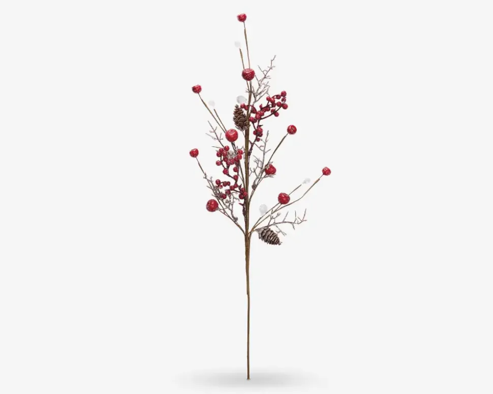 Dekorativ gren med røde bær i plastik der har en længde på 54 cm. Perfekt til at skabe julestemning i vaser, dekorationer eller som en del af en advent eller bordopstilling. De røde bær tilføjer et klassisk og festligt udtryk, der passer smukt ind i den traditionelle juleindretning.Forventet hjemme i uge 45
