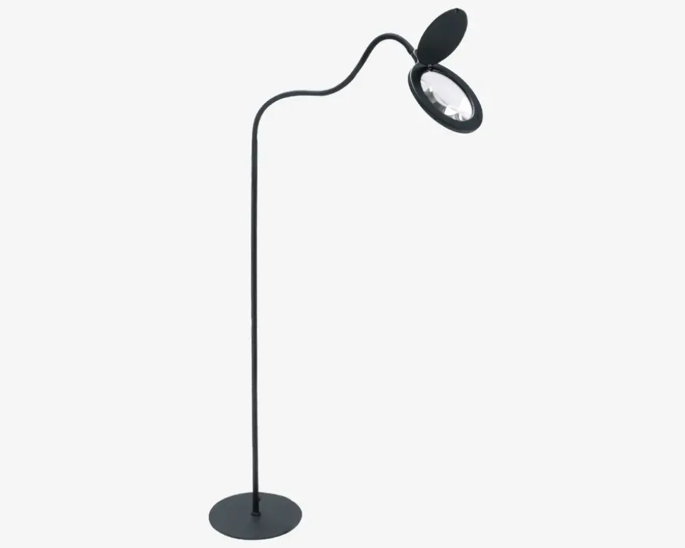 Magni gulvlampe fra Halo Design er en enkel luplampe med 3 x zoom og indbygget LED. Gulvlampen kan fx bruges bag ved den gode lænestol, når bogstaverne skal forstørres eller der skal holdes øje med at maskerne er korrekte i strikkeprojektet. Den har en lang fleksibel arm, som giver dig muligheden for at vinkle den som du ønsker. Derudover kan lampen justeres i 3 trin i kelvin, dvs. fra varmt til koldt lys. • Mål i cm: H.130 x Ø.25• Farve: Sort• Materiale: Alu/Metal• Integreret LED 10,5W• Lumen: 560• Kelvin: 3000/4300/6300• Ra: 80• Levetid i timer: 20.000• Energiklasse: G• IP20• Ledningslængde: 180cmBEMÆRK, at lyskilde ikke kan udskiftes
