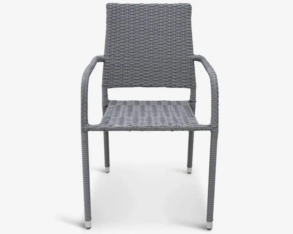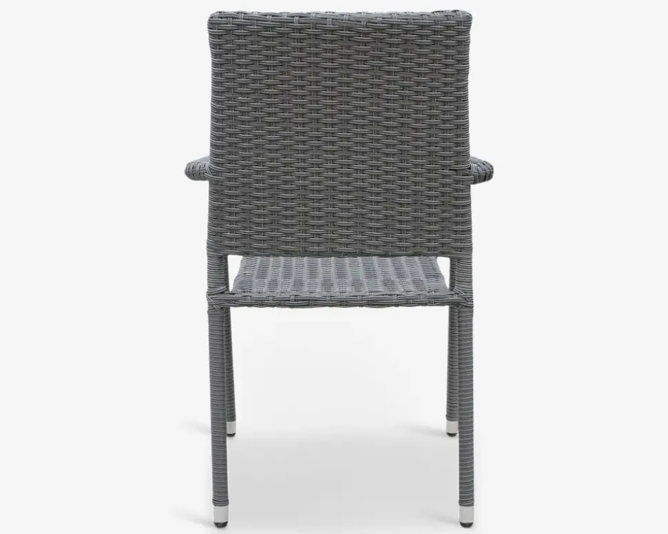 En prisbillig stabelstol som tilbyder en god siddekomfort. Stellet er fremstillet i pulverlakeret stål omviklet med grå mix polyrattan. Havestolen sælges ekskl. hyndeStolen kan stables og kan kombineres med alle vores borde i vores sortiment. Det er kun din fantasi der sætter grænsen.• Sortlakeret stålstel• Grå mix Polyrattan• Vedligeholdelsesfri• Mål i cm: H.87 x B.64 x D.54• Siddehøjde: 44 cm + en eventuel hynde• Hvis stellet bliver skrammet bør eventuelle afskalninger dækkes• Vi anbefaler at stolen opbevares overdækket uden for sæsonen