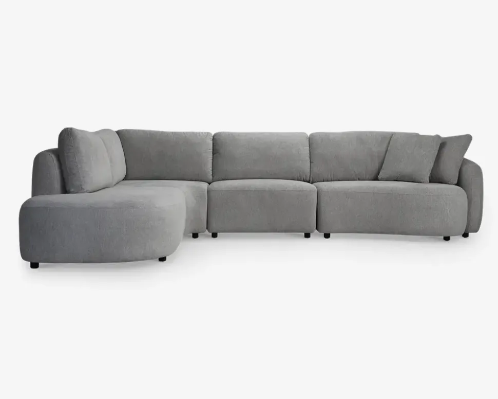 Elegant og moderne designet hjørnesofa og med open end afslutning. Sofaen er konstrueret med træramme hvor i der er nozagfjedre. I sæderne er der posefjedre med formstabilt polyether skum ovenpå og i ryg er der også formstabilt polyether skum, hvilket giver en fantastisk siddekomfort og en lang holdbarhed. Sofaen er monteret med meget slidstærkt møbelstof som fås i beige og i grå. Sofaen er designet med organiske former og med løse ryghynder. Dette giver en endnu bedre komfort og de har den fordel at de altid kan bankes op til sin oprindelige form. Sofaen kan fås højre eller venstrevendt. Dette afgøres ved bestilling. • Elegant og moderne design• Rigtig dejlig siddekomfort• Slidstærkt og kraftigt møbelstof• Træramme med nozagfjedre• Sæder med Pose fjedre og formstabilt polyether• Mål i cm. L.326 x D.242/107 x H.43/84