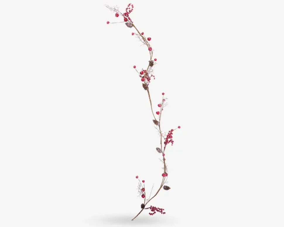 Dekorativ granguirlande med røde bær i plastik, der har en længde på 120 cm. En stemningsfuld julepynt, der kan bruges til at skabe hygge på f.eks. reolen, trappen eller som borddekoration. Det naturtro udtryk og de klassiske farver gør guirlanden til et tidløst indslag i juleindretningen. Nem at forme og genanvende år efter år.