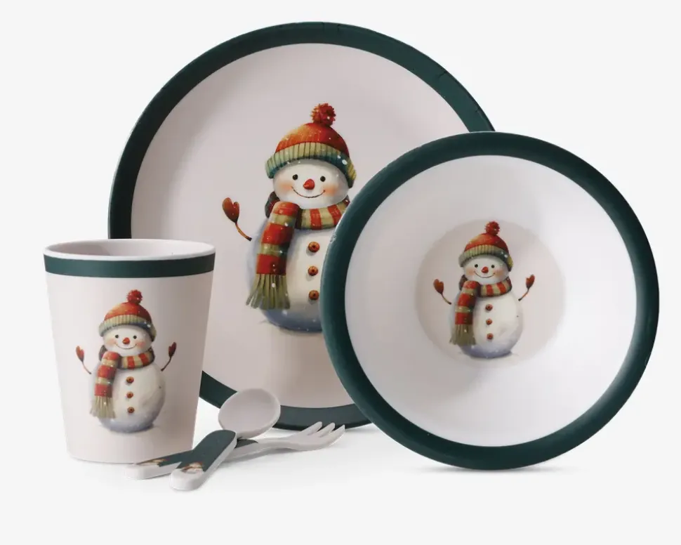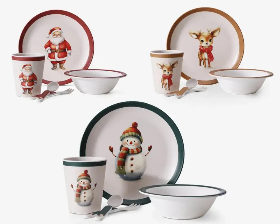 Juleservice til børn der kommer med 5 dele. Fremstillet i melamin og består af kop, skål, tallerken, gaffel og ske. Perfekt til hyggelige måltider i juletiden, hvor det festlige motiv gør spisetid sjovere for de mindste.